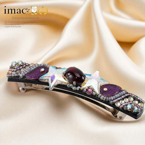 • バレッタ ボヘミアングラス パープル スター リーフ 留金8cm 102193