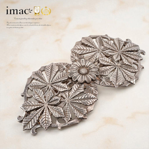 • バレッタ レースメタル シルバー フラワー リーフ 留金9cm 122681
