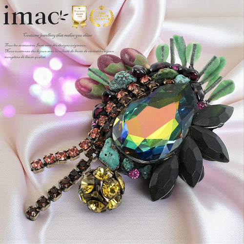 ブローチ ラインストーン 天然石 ターコイズ ガーネット 樹脂 グリーン ブルー イエロー ブラウン ブラック レッド ハンギング br120697