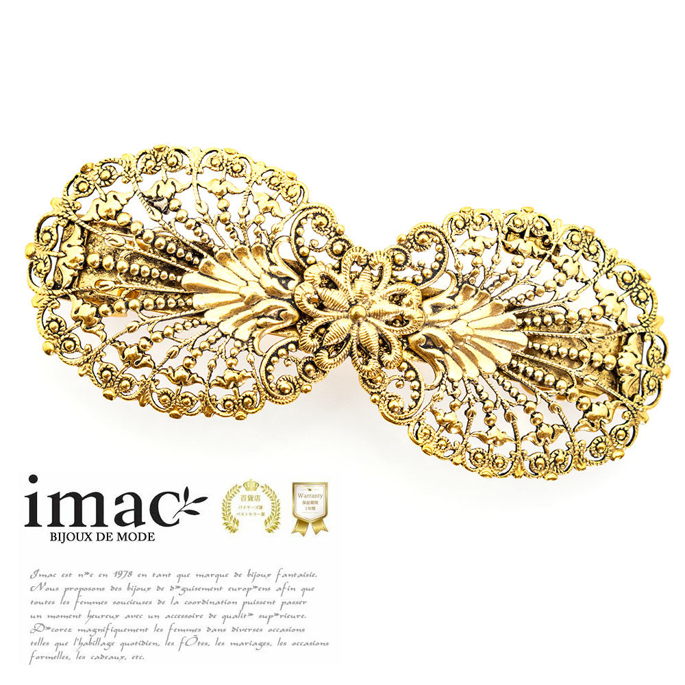 イマックのレースメタルバレッタは、フランスのパリで作られています。 アンティークメタル型は一度壊れると現在の技術では修復できないため、職人の技術レベルが高くないと扱えません。