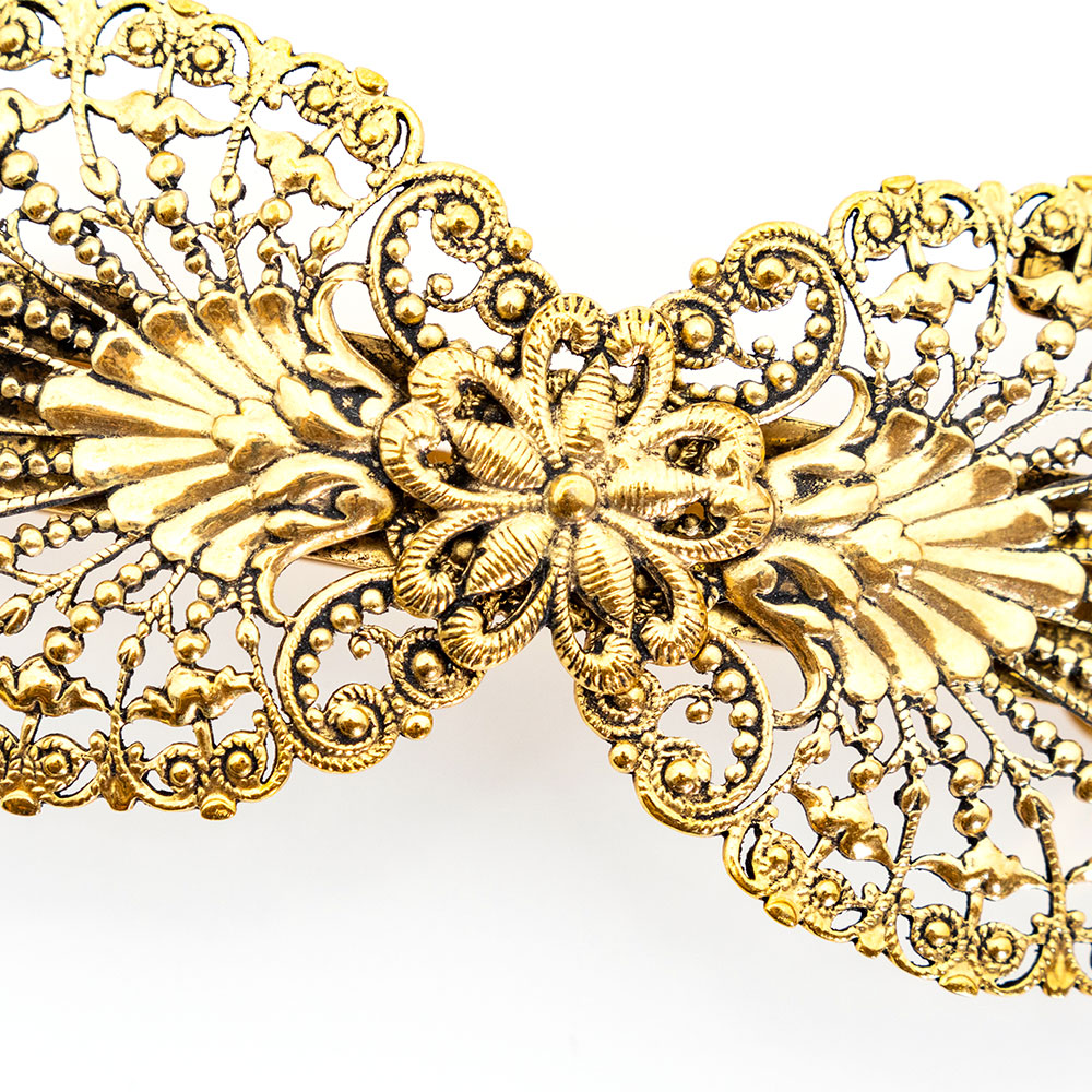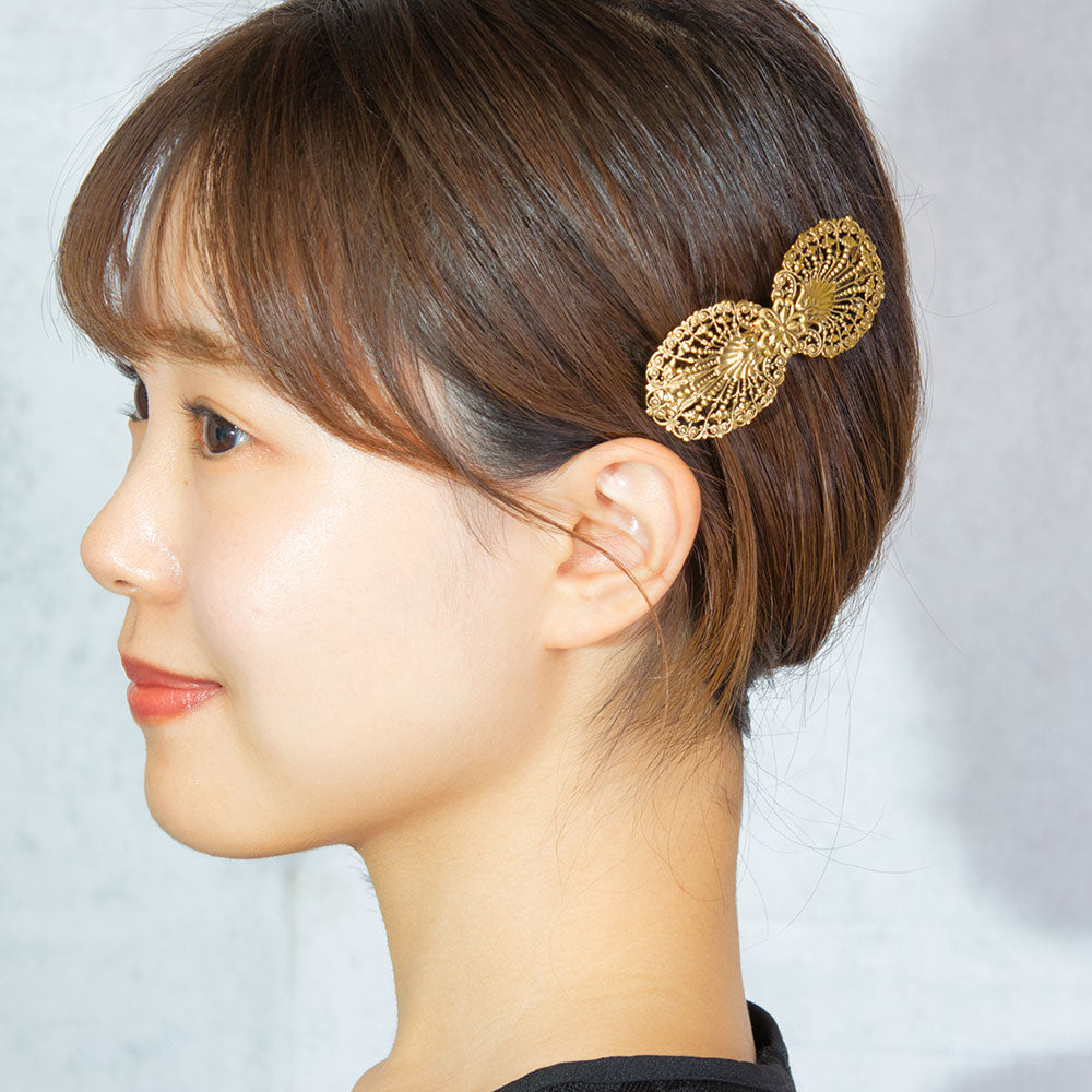 アンティーク調のレースメタルのデザインが美しいヘアバレッタ。