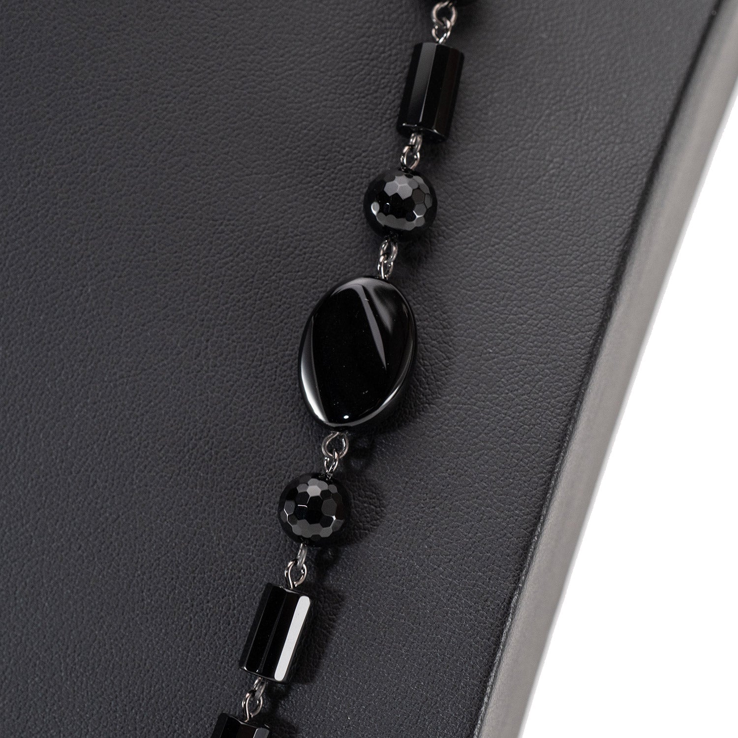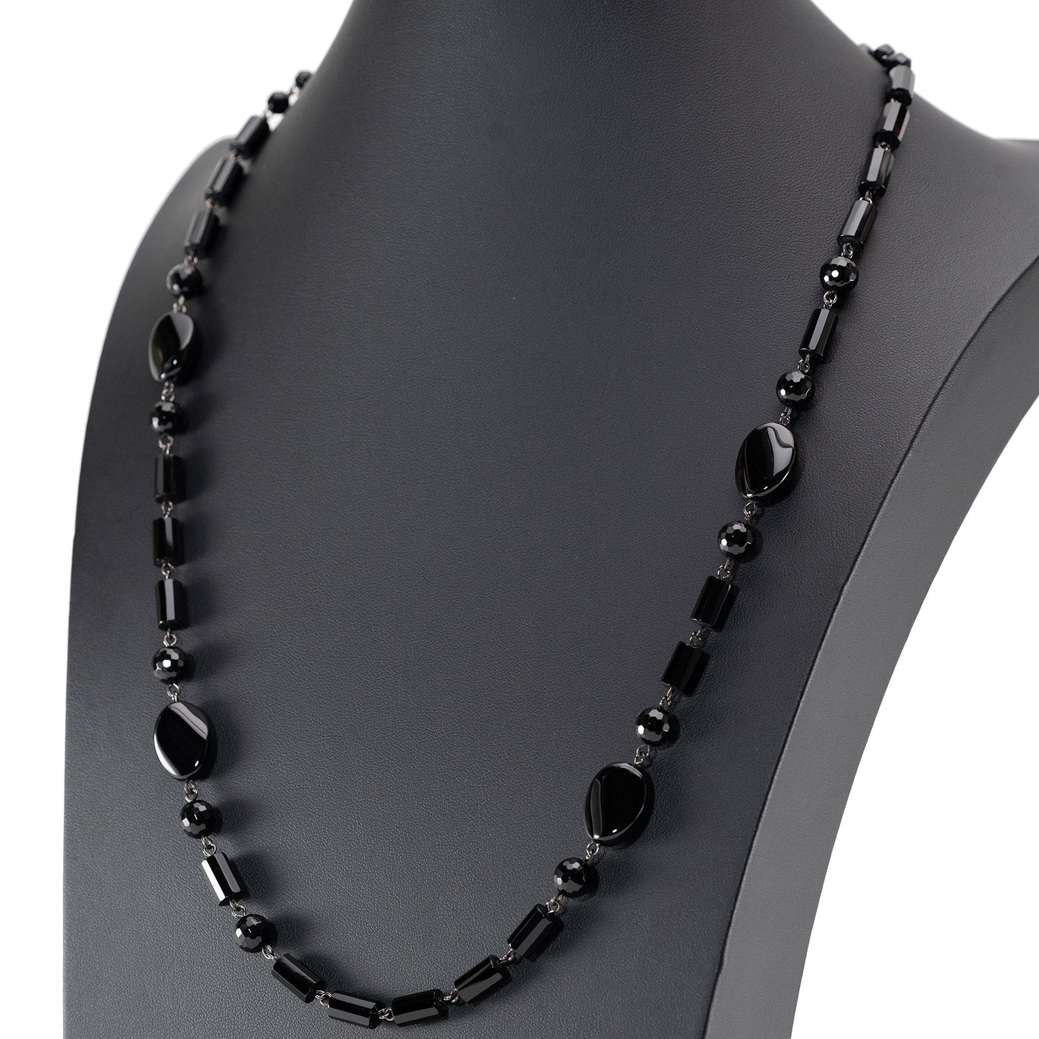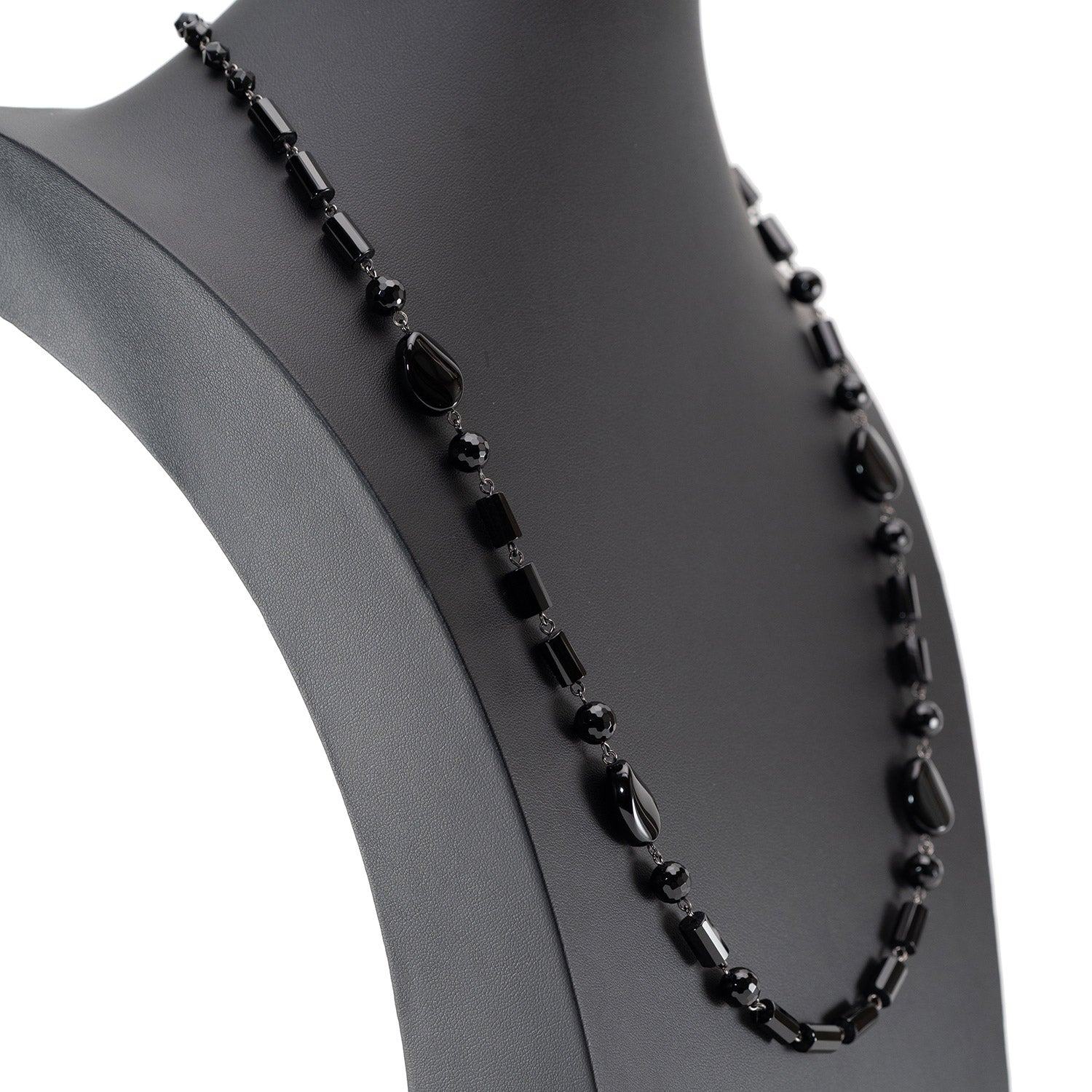天然石ブラックアゲートを贅沢にあしらったロングネックレス。