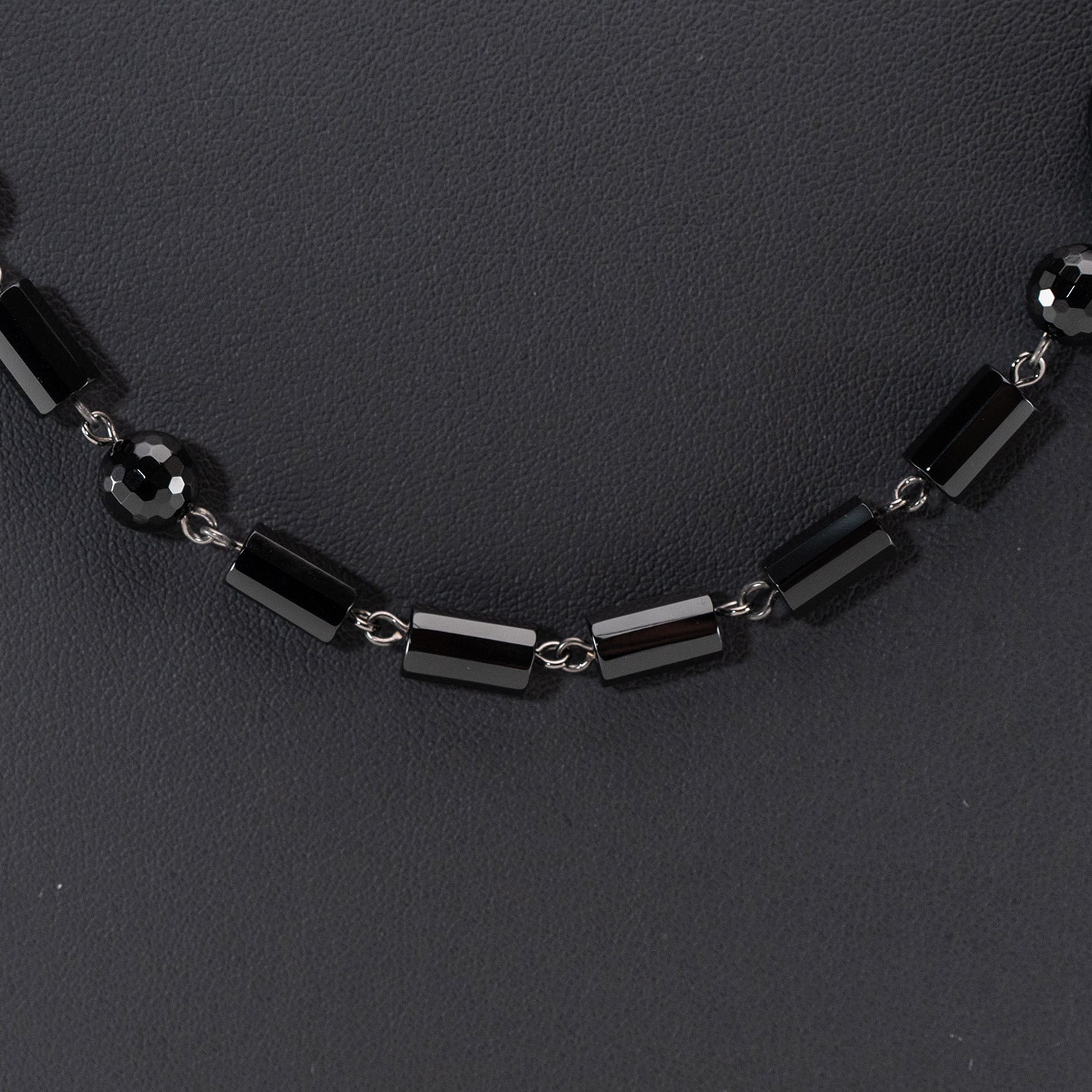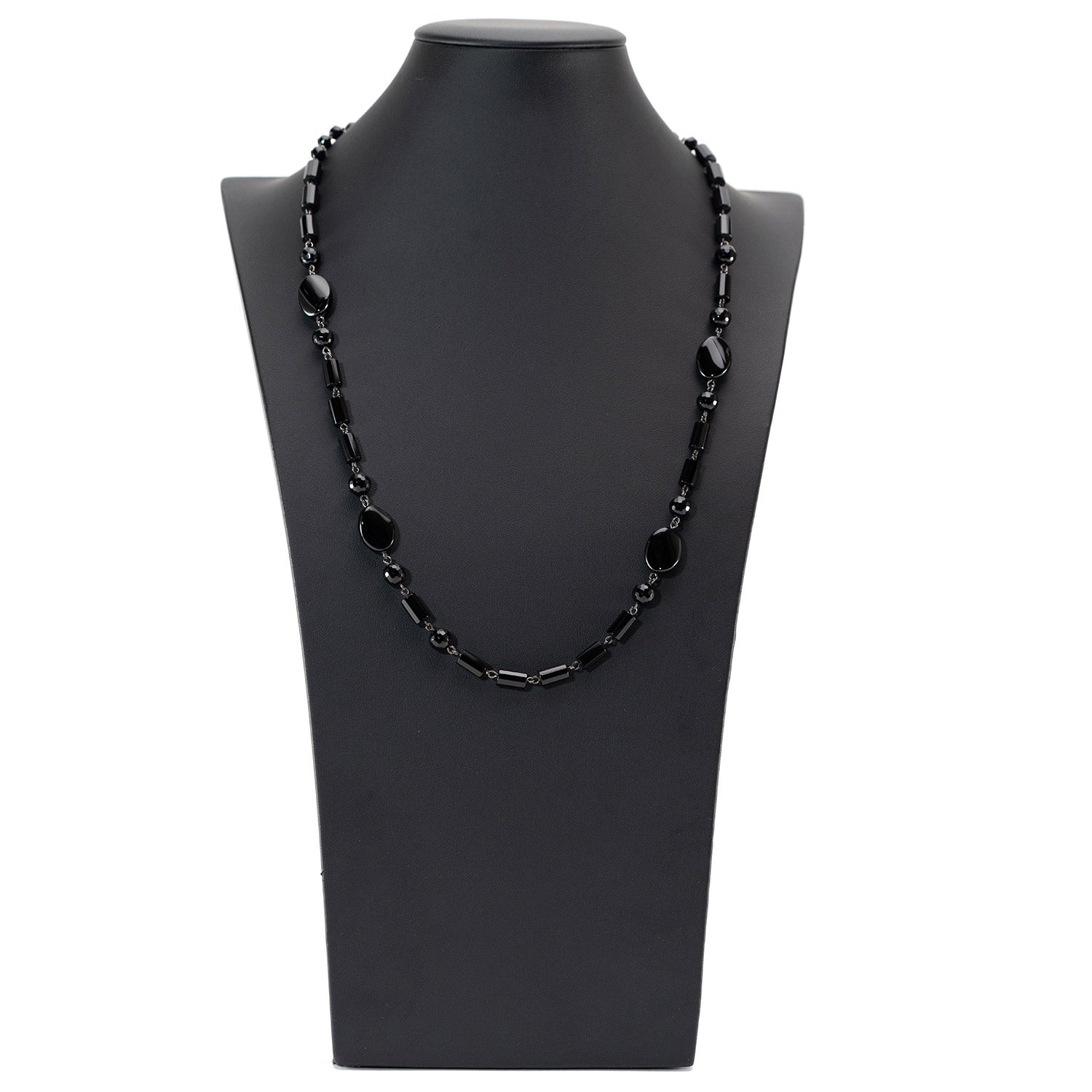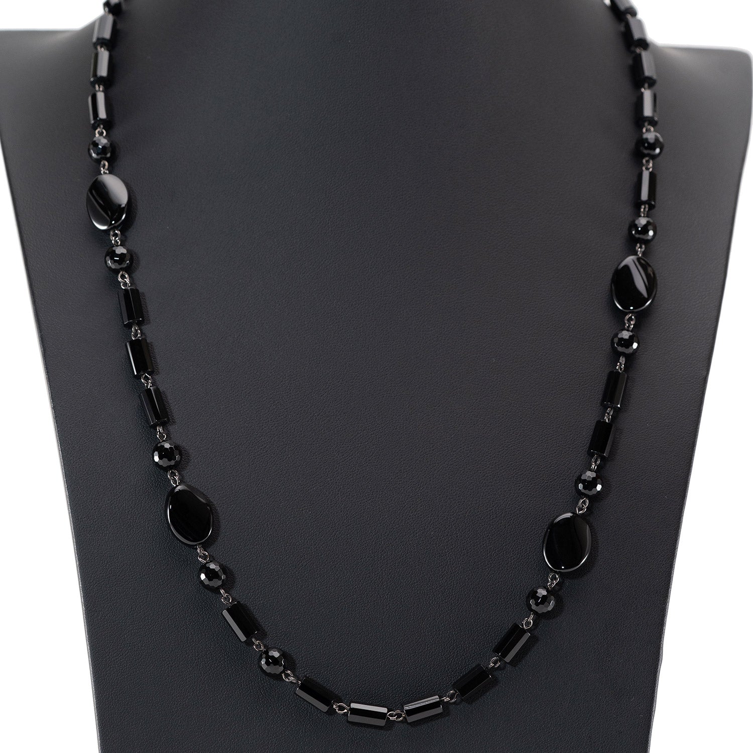 天然石ブラックアゲートを贅沢にあしらったロングネックレス。