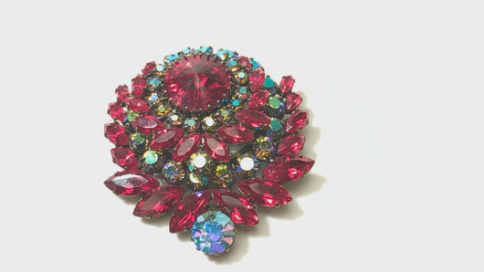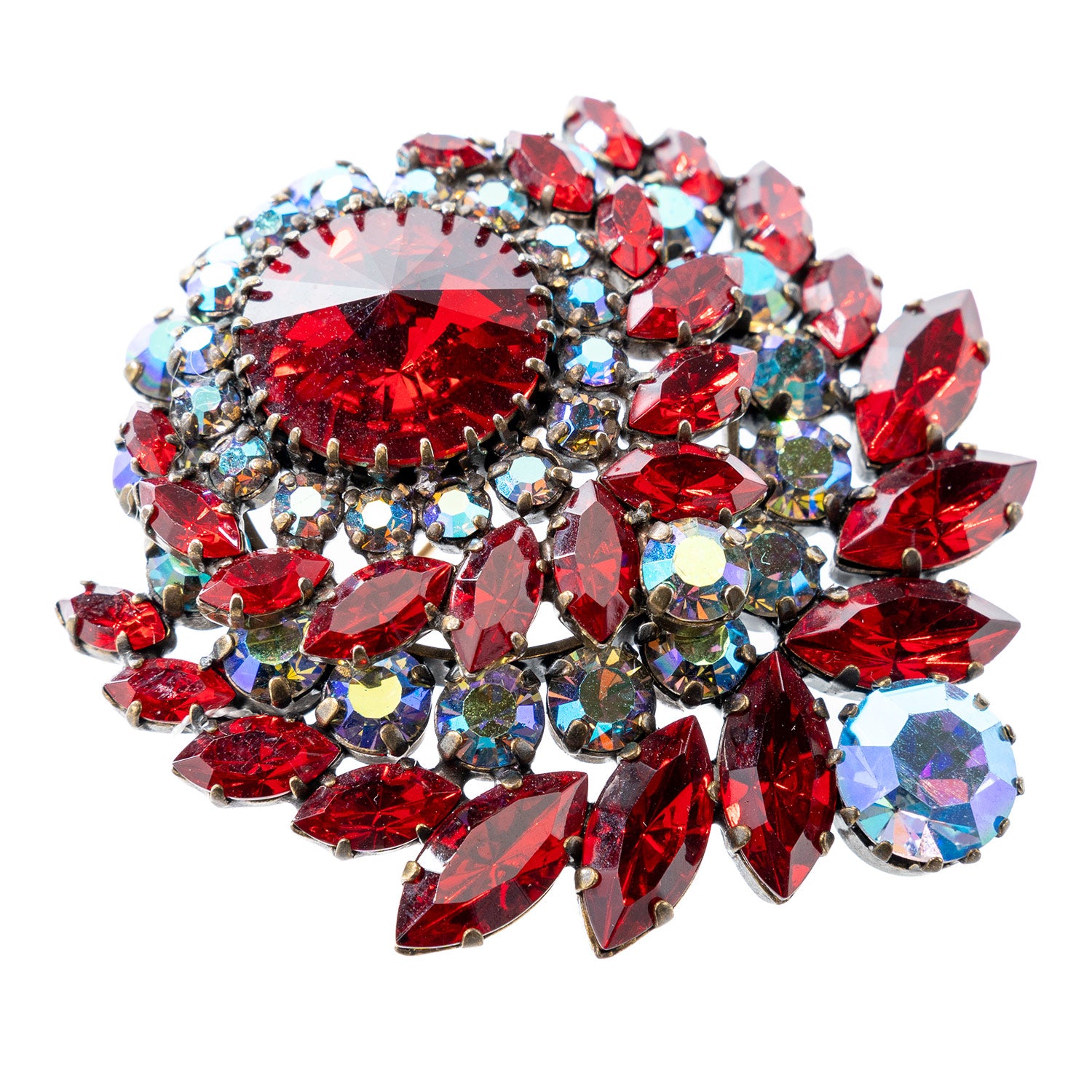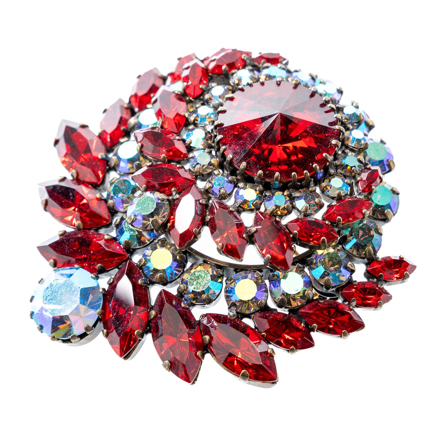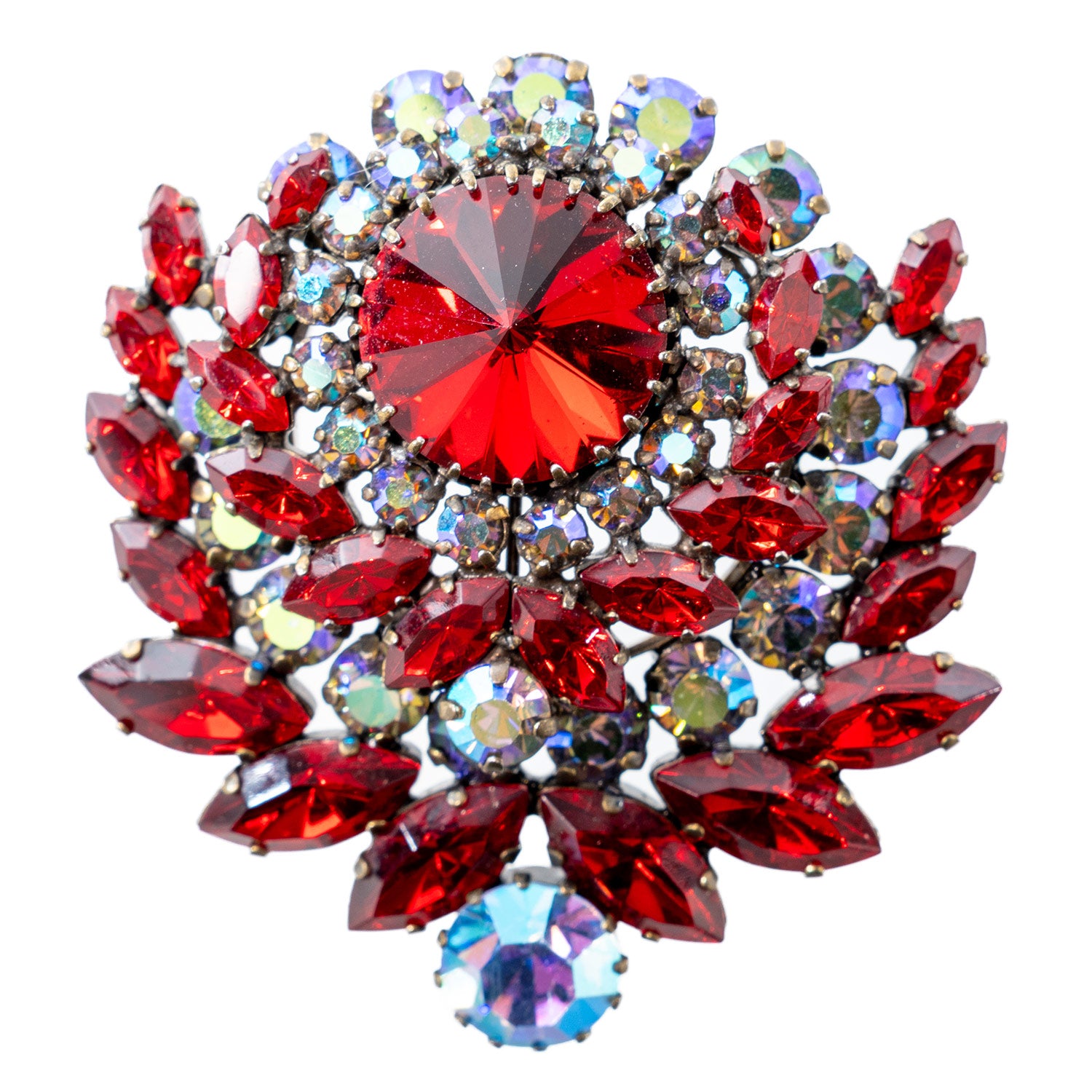 ブローチ ラインストーン レッド オーロラカラー 088344