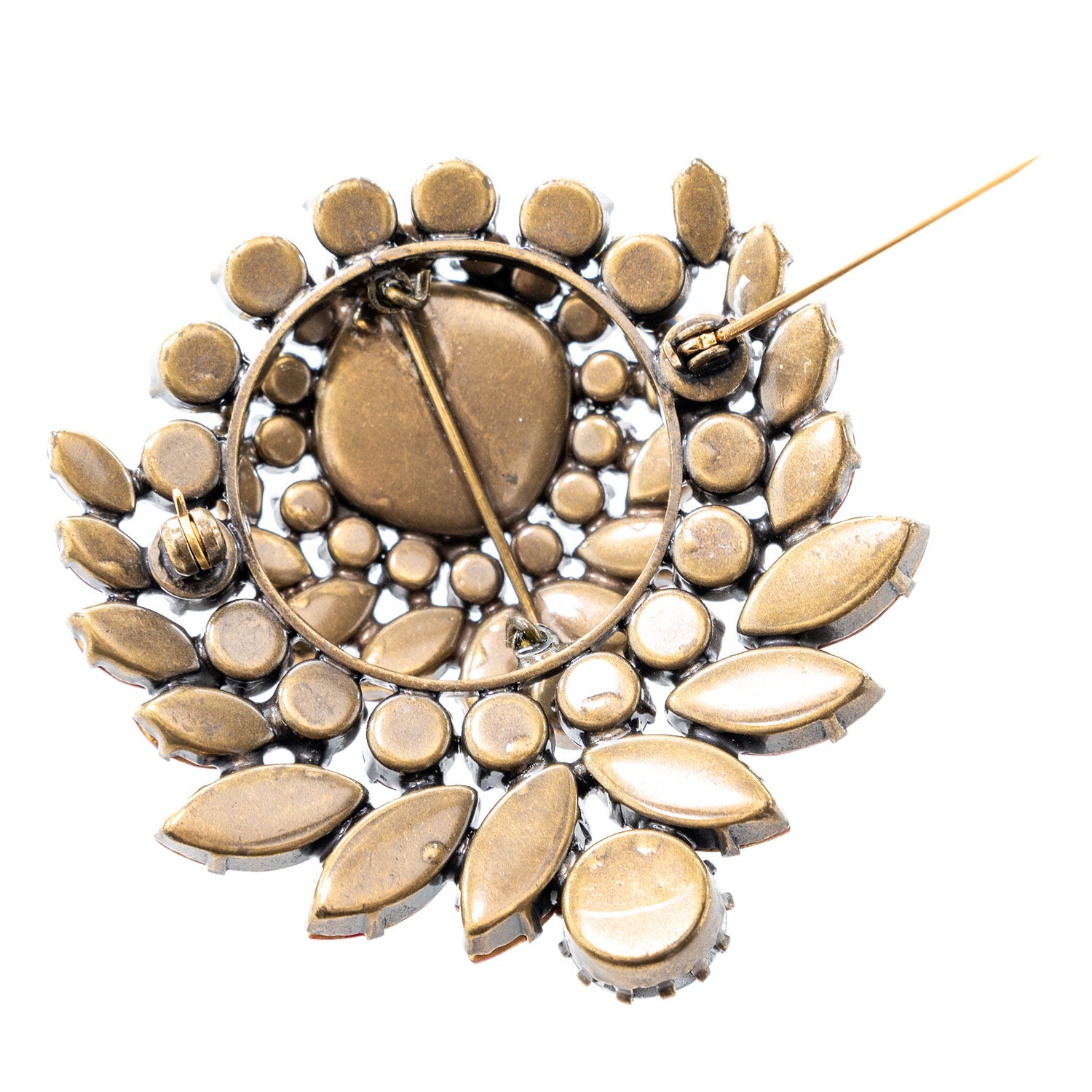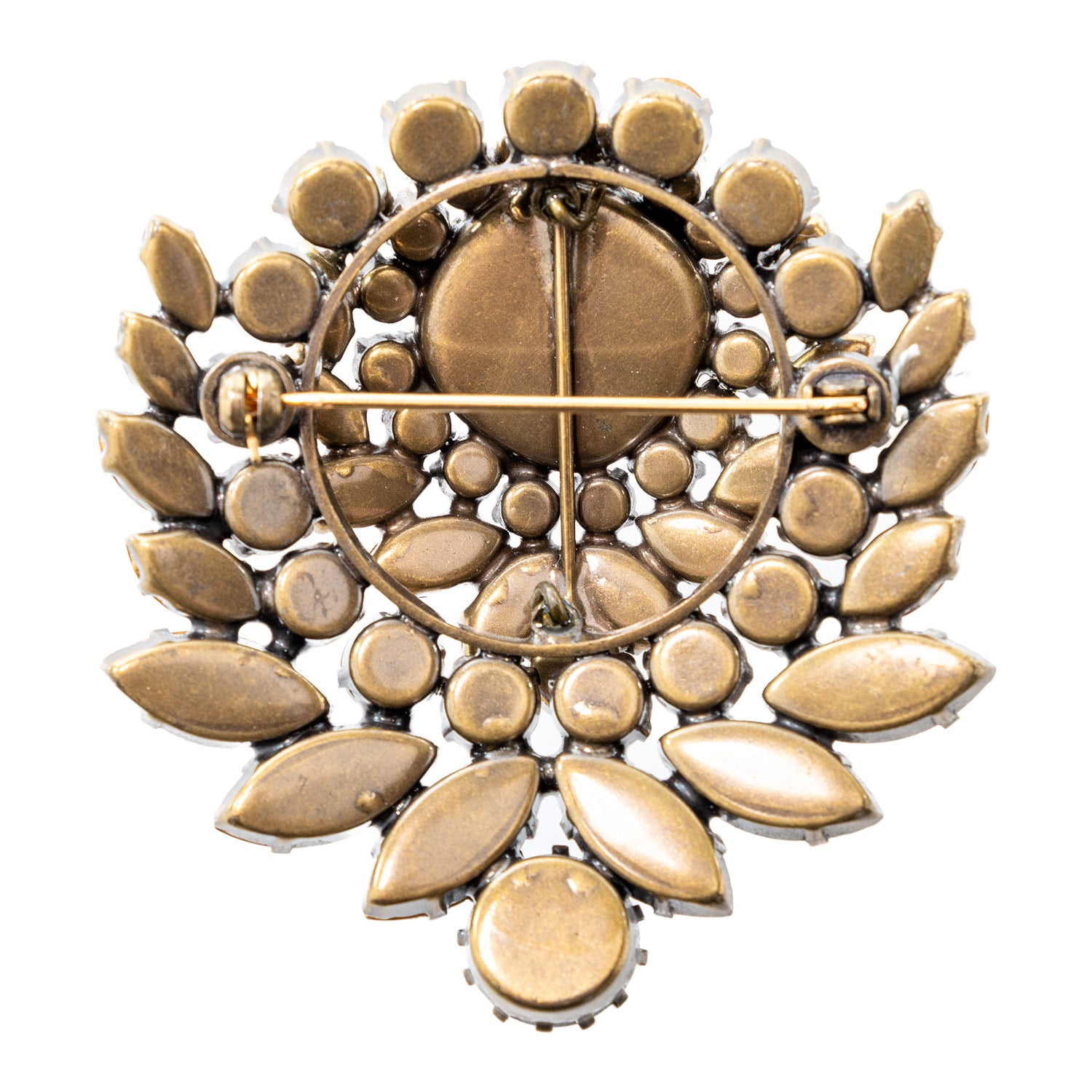 大粒のスワロフスキークリスタルをふんだんにあしらったラインストーンブローチ。