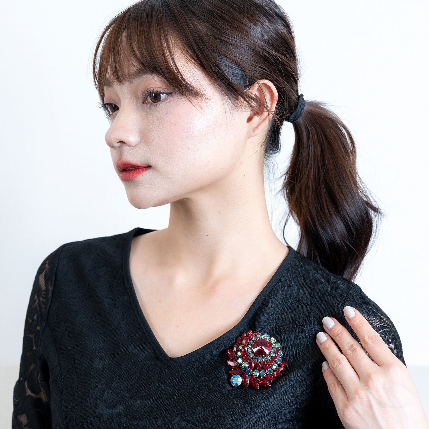 ブローチ おしゃれ プレゼント 赤 人気 レディース スワロフスキー ブランド エレガント 高級感 アンティーク