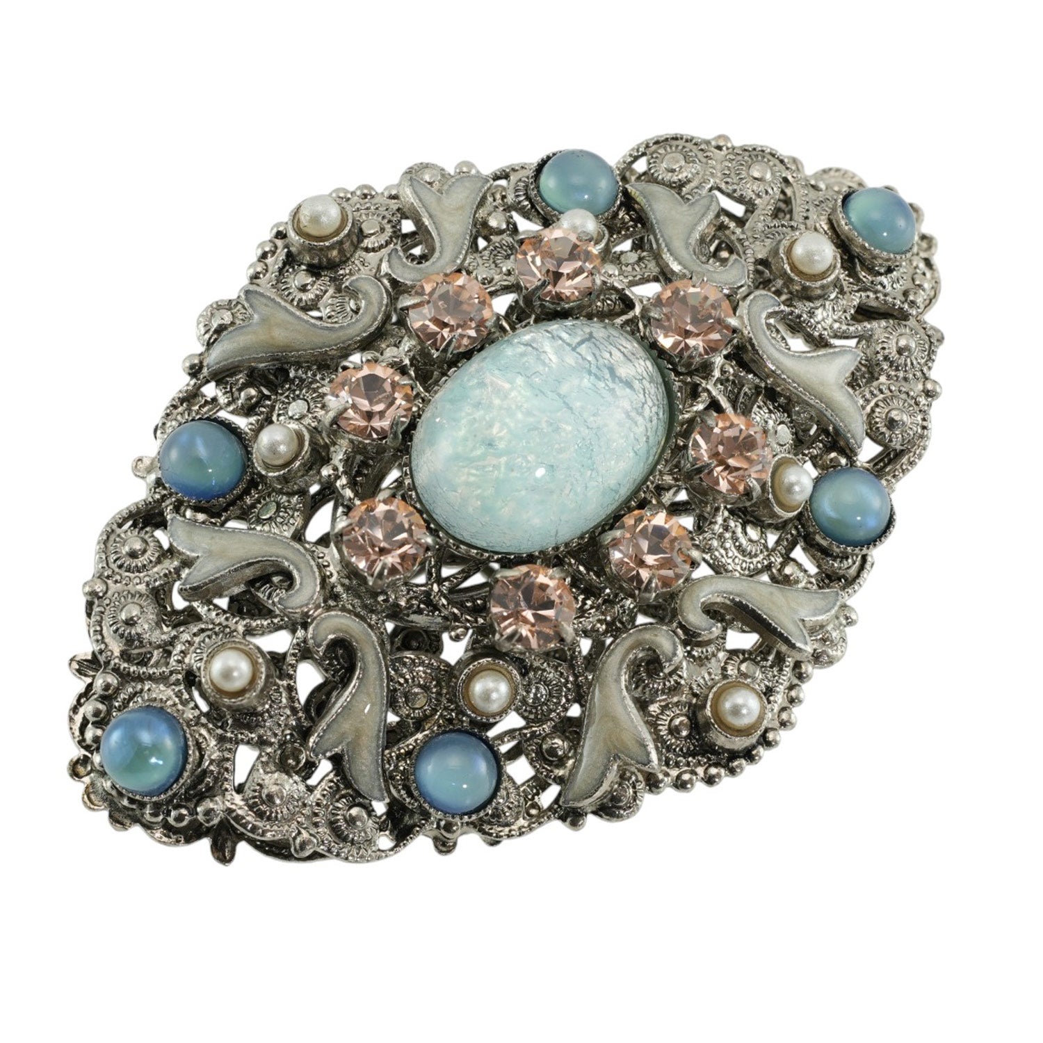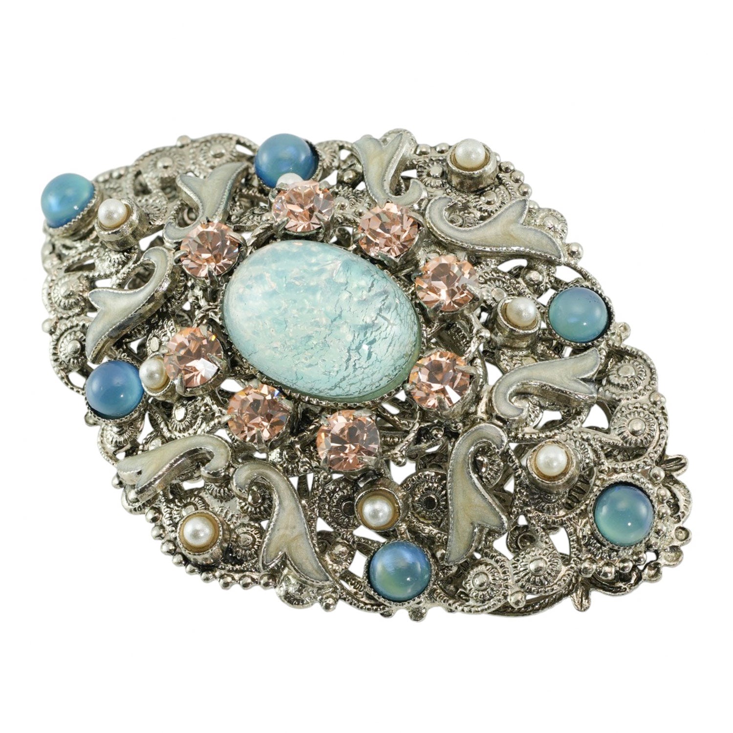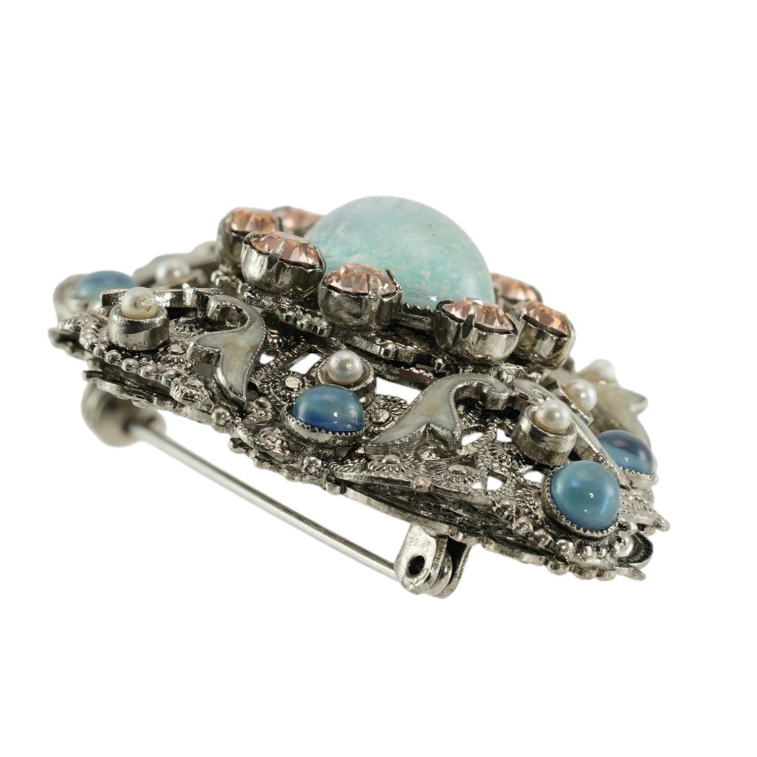 上質なボヘミアングラス、スワロフスキークリスタル、七宝を組み合わせたブローチ