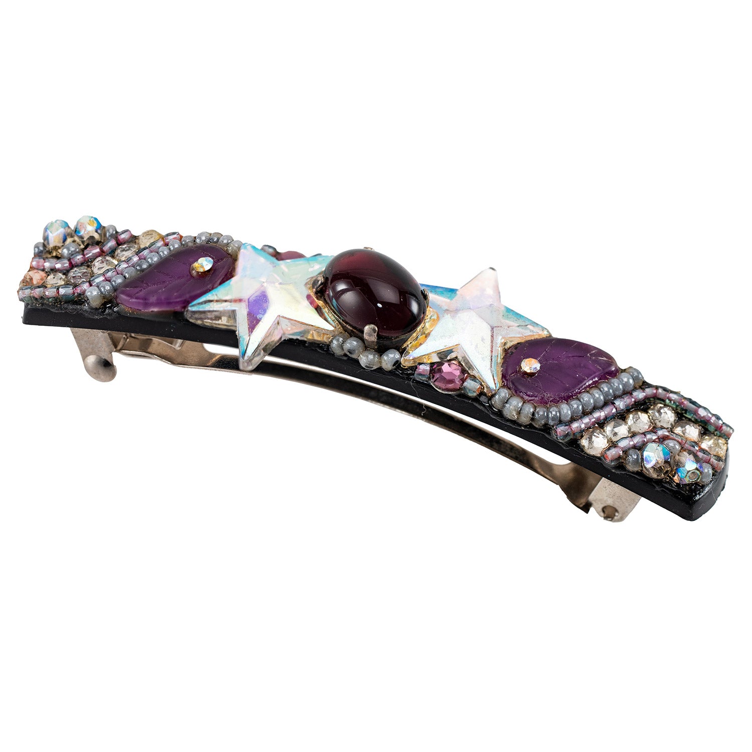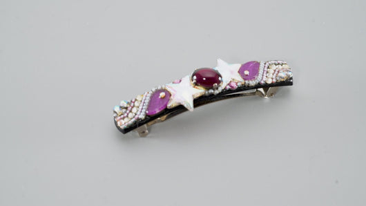 バレッタ ボヘミアングラス パープル スター リーフ 留金8cm 102193