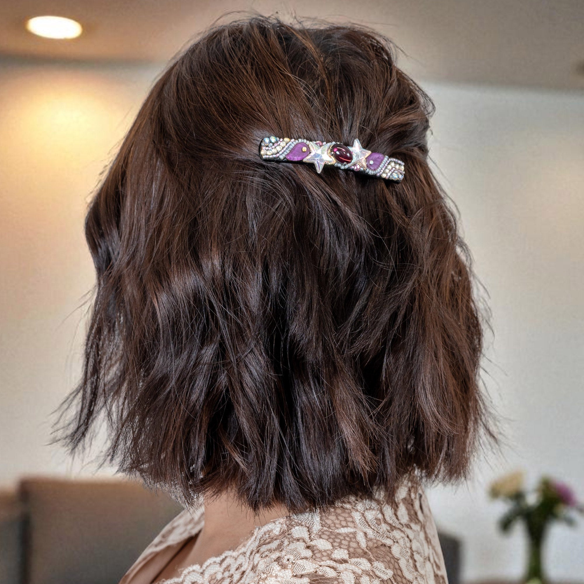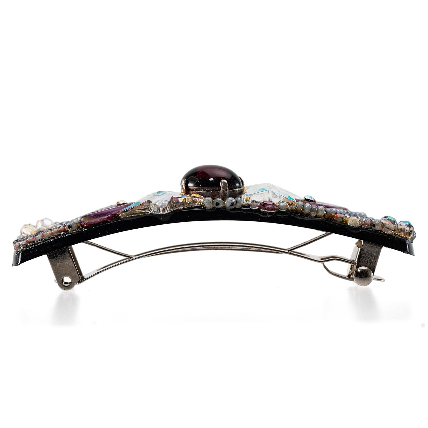 上質なボヘミアングラスをあしらい、高級感あふれるバレッタ。