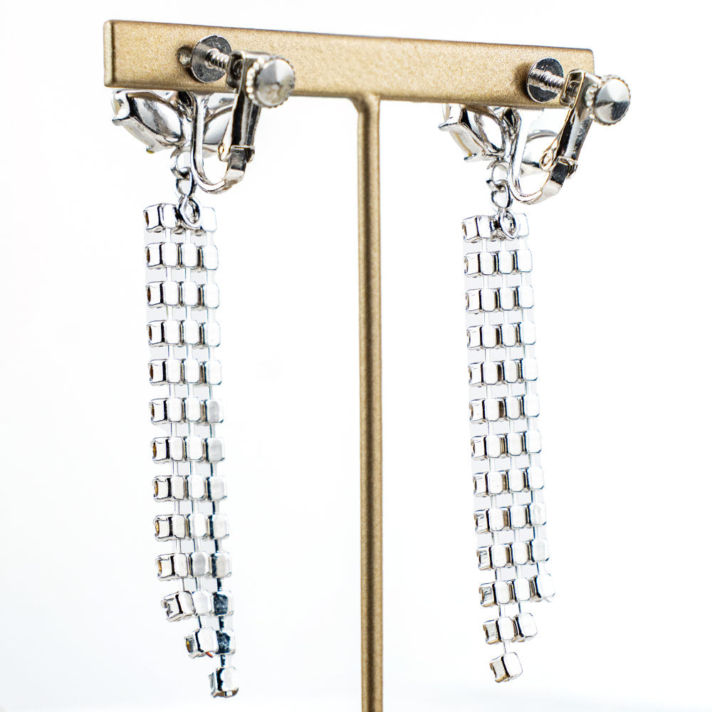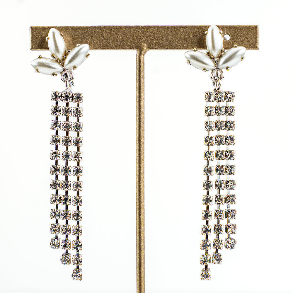 ラインストーンとパールの組み合わせがエレガントなイヤリングです