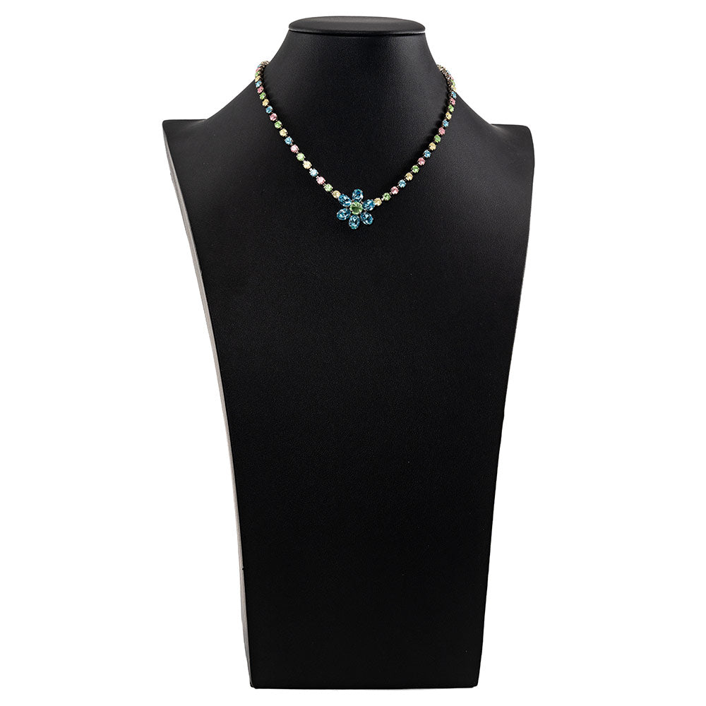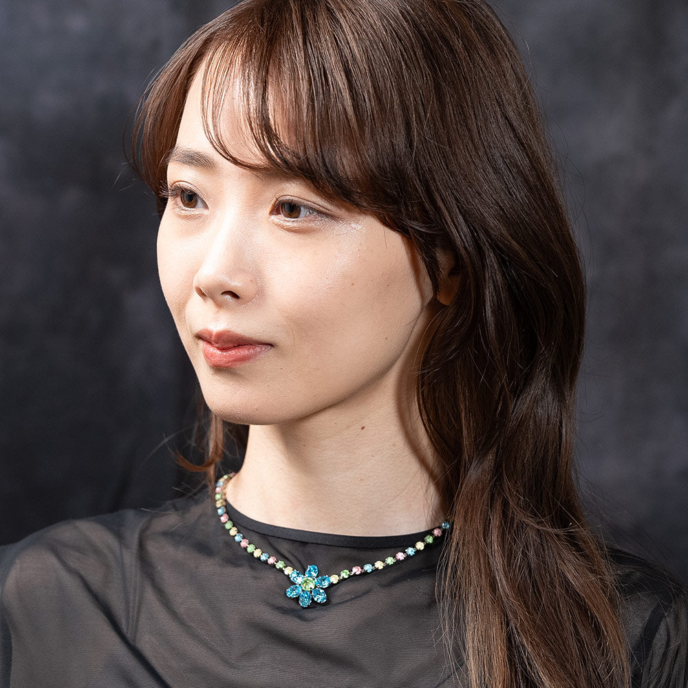 ネックレス ラインストーン ブルー ピンク イエロー グリーン フラワー 39.5cm 088212