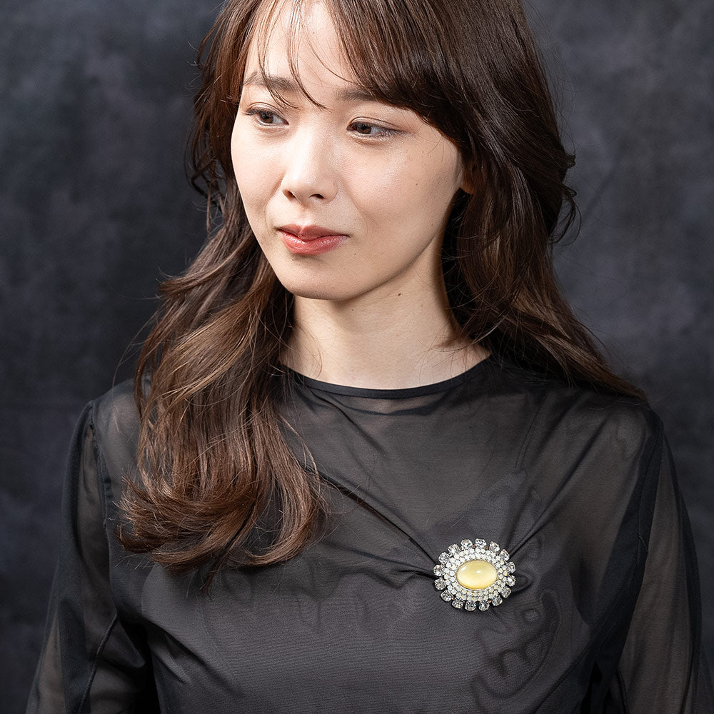 ブローチ アクセサリー 黄色 透明 白 大ぶり スワロフスキー おしゃれ プレゼント 人気 女子会 お呼ばれ 同窓会 食事会 誕生日 ホワイトデー 母の日 クリスマス ギフト レディース ブランド エレガント 高級感