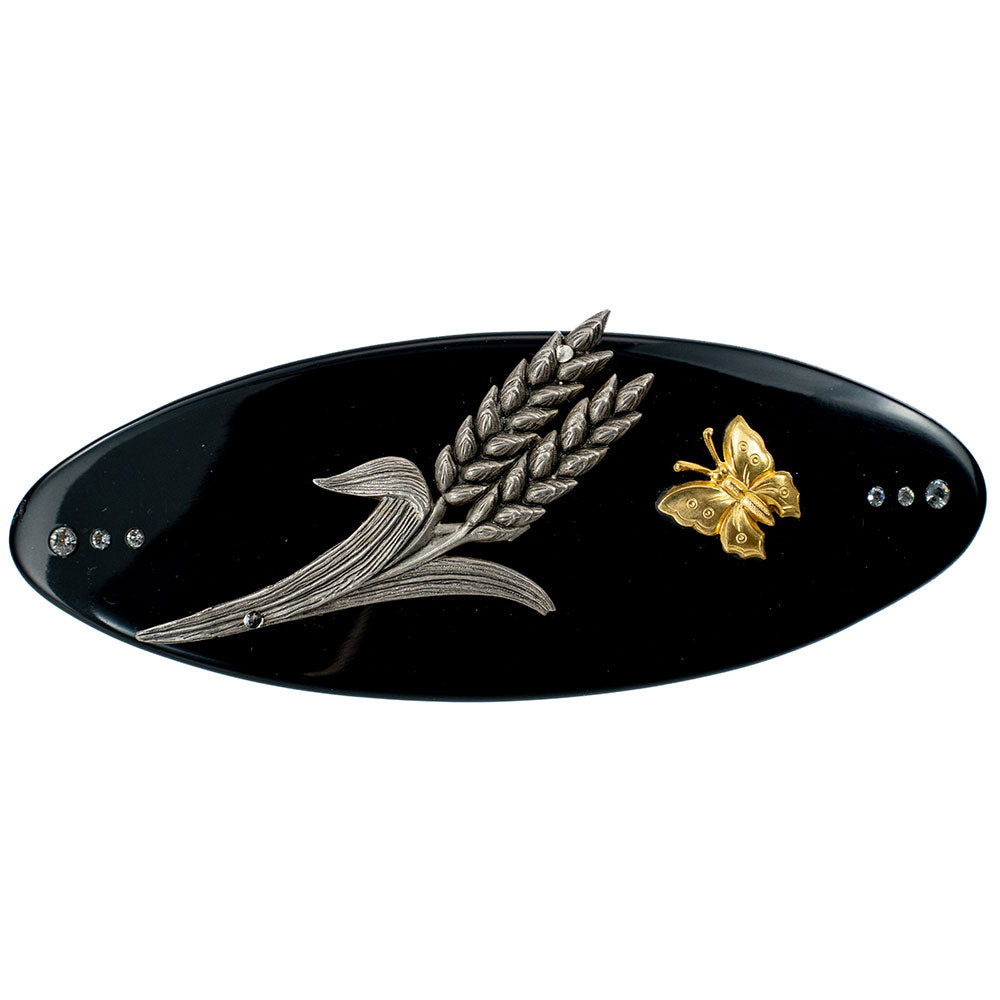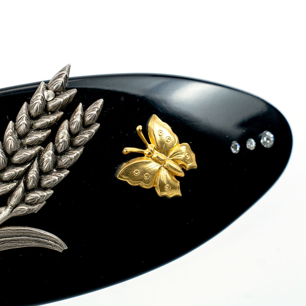 ボタニカルとバタフライモチーフのアンティークメタルが美しいヘアバレッタ。