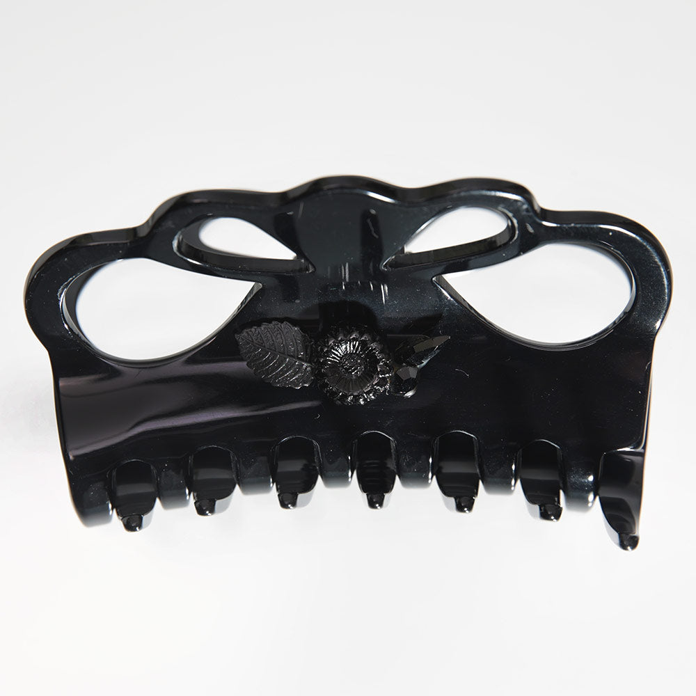 花モチーフの黒曜石とボヘミアングラスをあしらったヘアクリップ