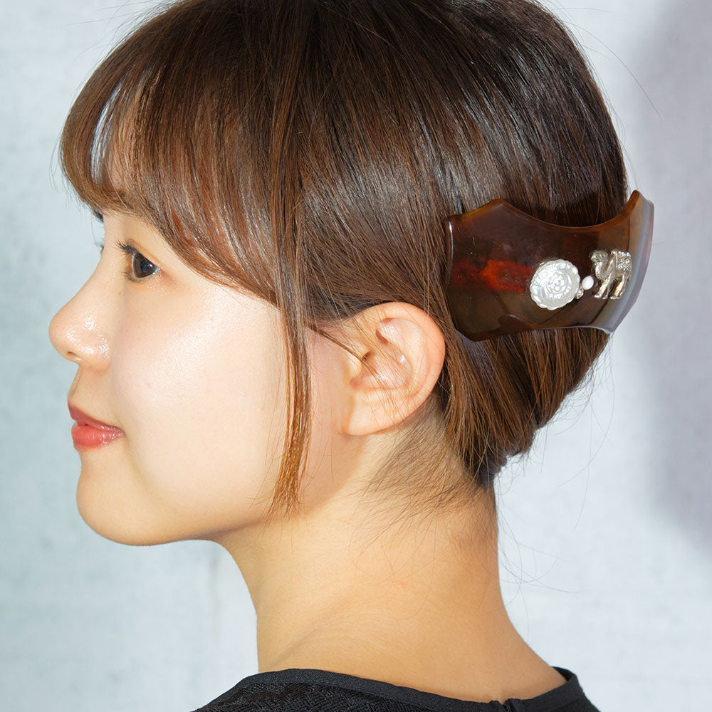 らくだと薔薇モチーフの組み合わせが上品なバレッタ。
