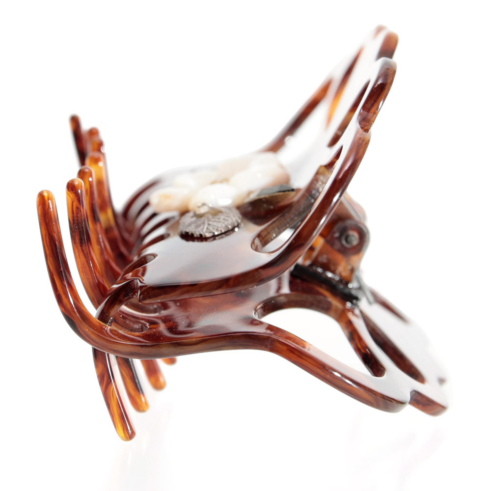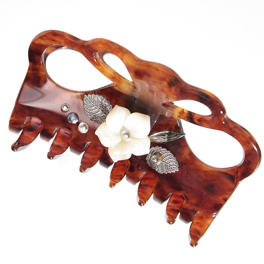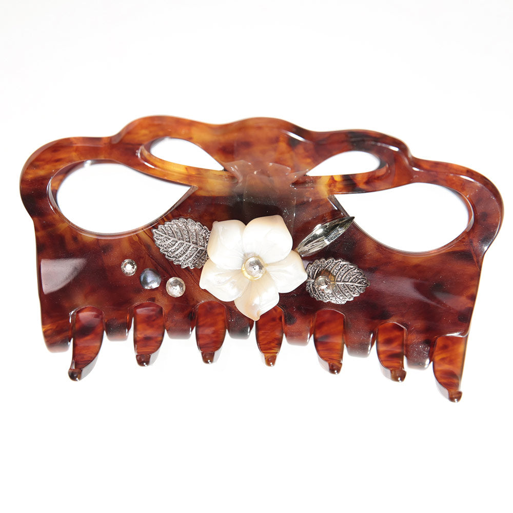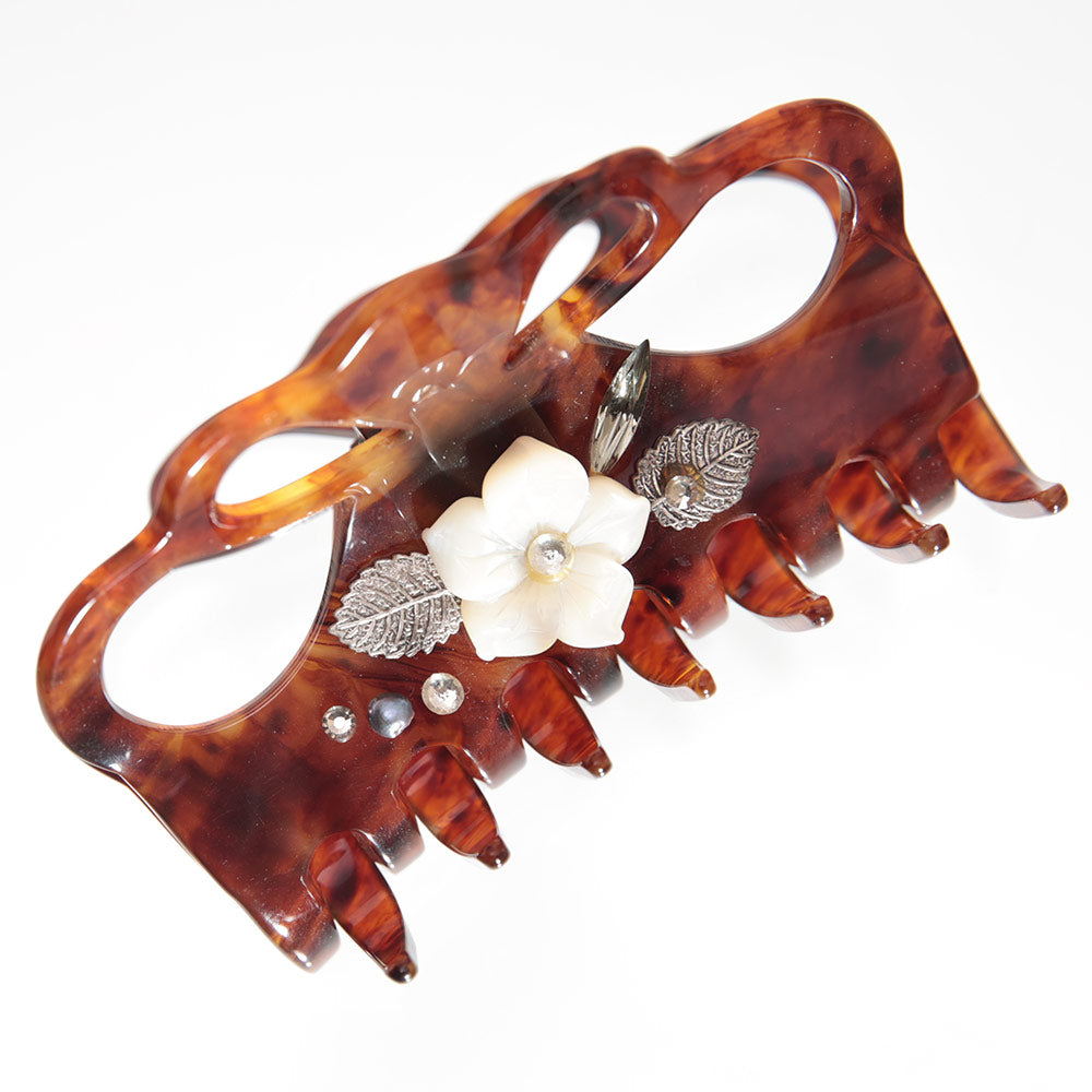 花モチーフの白蝶貝(マザーオブパール)の上品な光沢が美しいクリップ「ガーデン」。