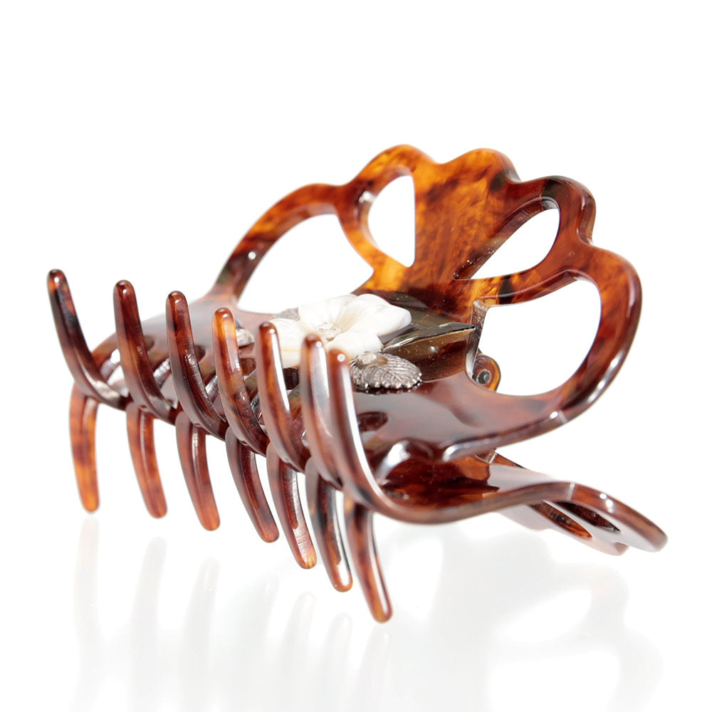 イタリア製の上質なプレキシグラス素材を、フランス工房でヘアクリップに加工しています