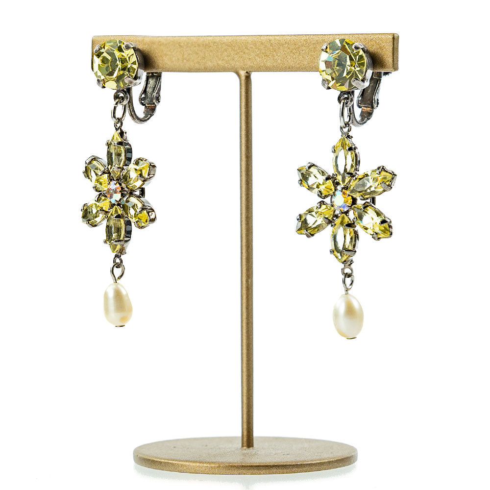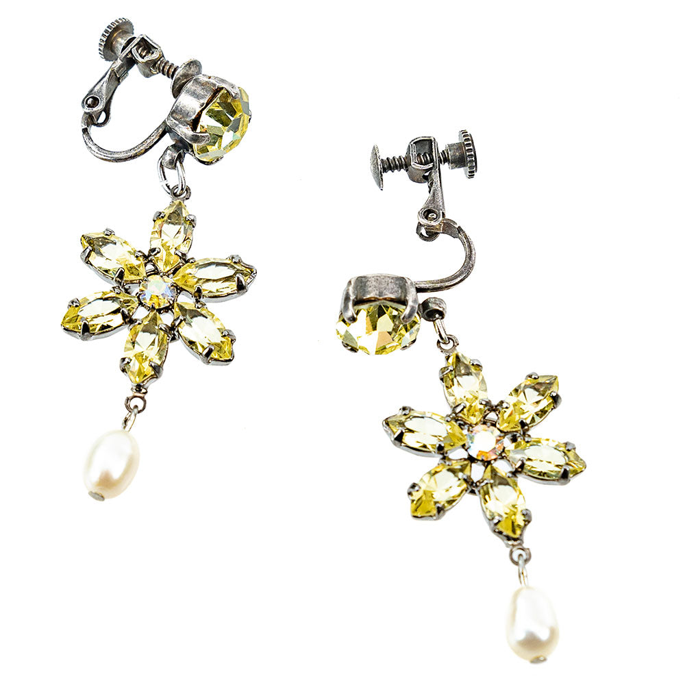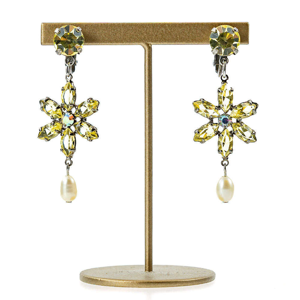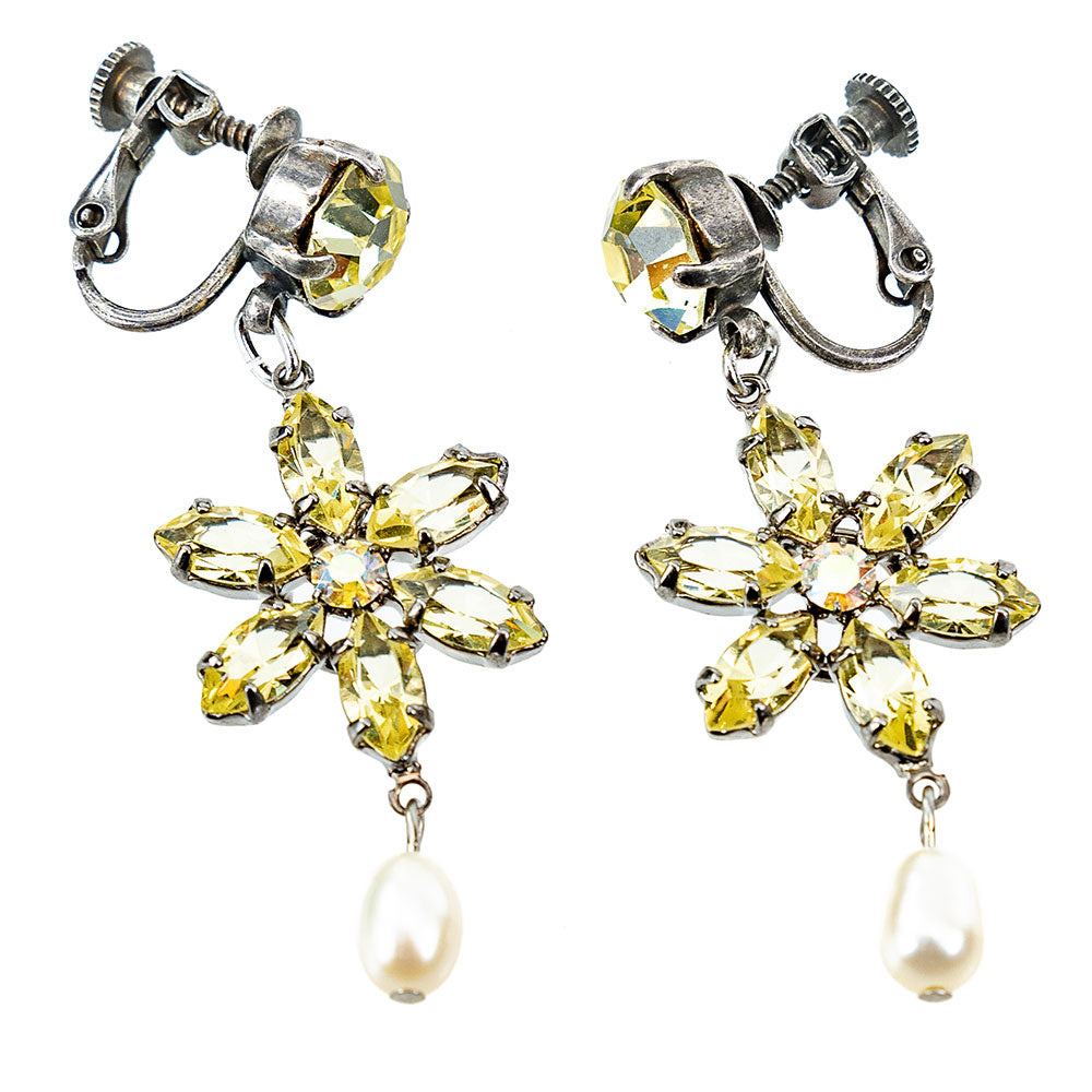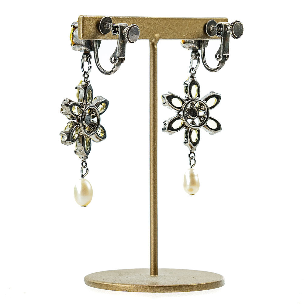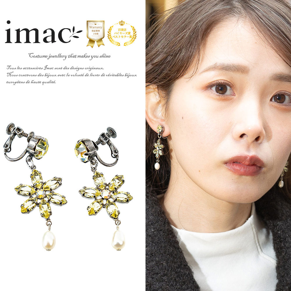 イヤリング 耳飾り 黄色 花 真珠 揺れる おしゃれ プレゼント 人気 ピンク レディース 観劇 母の日 クリスマス ブランド エレガント 高級感 アンティーク風