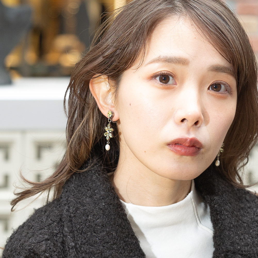 パールとラインストーンの組み合わせが上品なイヤリング。