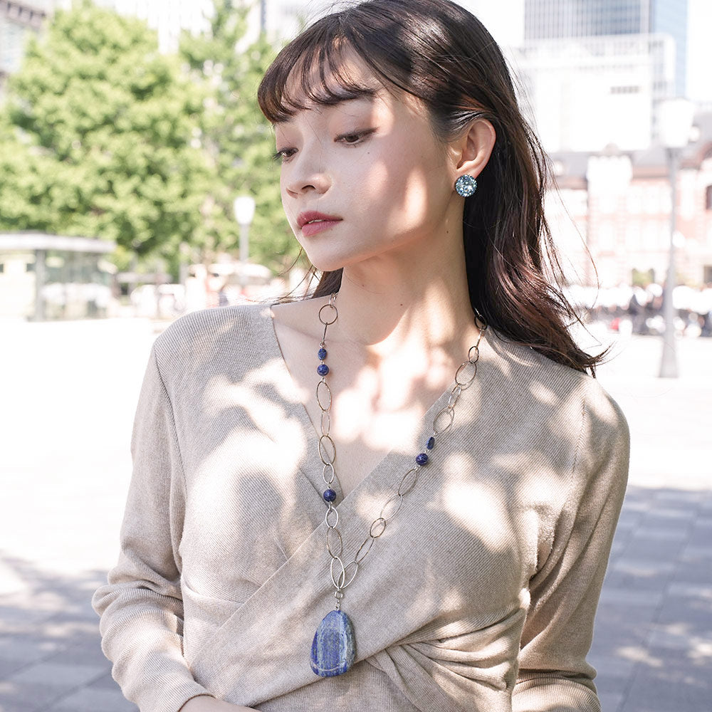 大ぶりのラピスラズリが胸元を上品に彩ります。