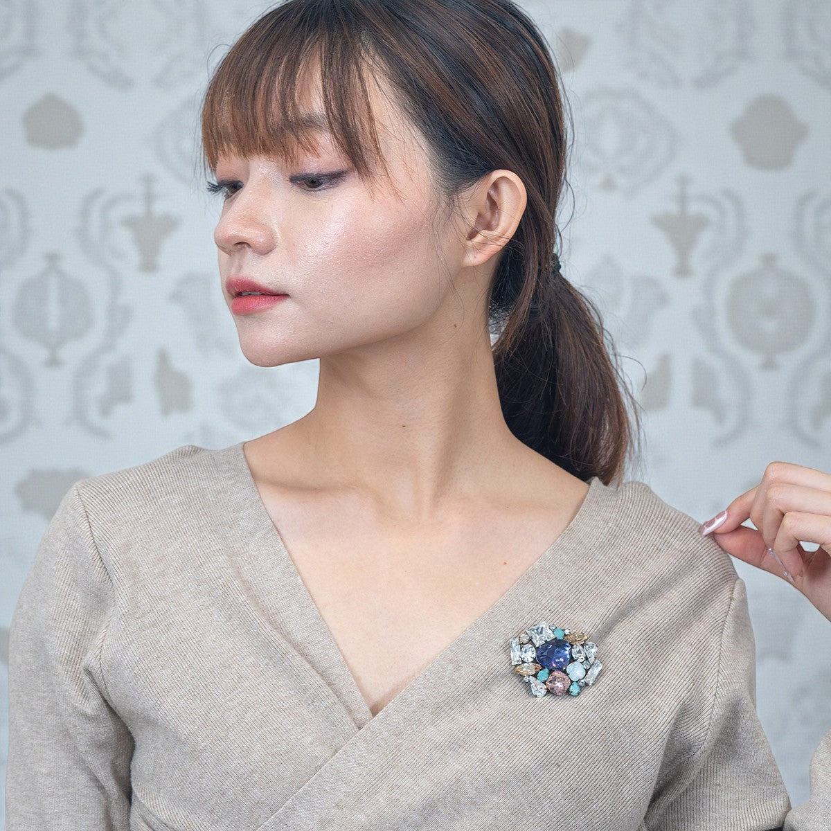 カラフルなラインストーンを組み合わせたラグジュアリーなブローチ。