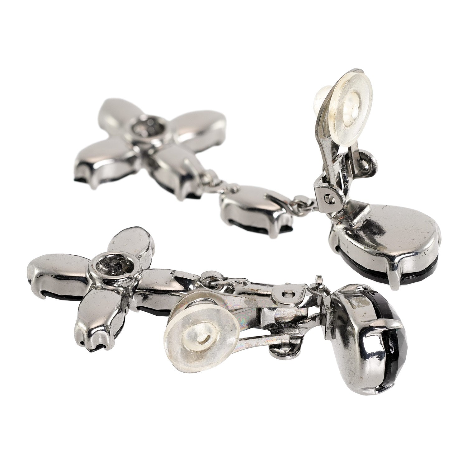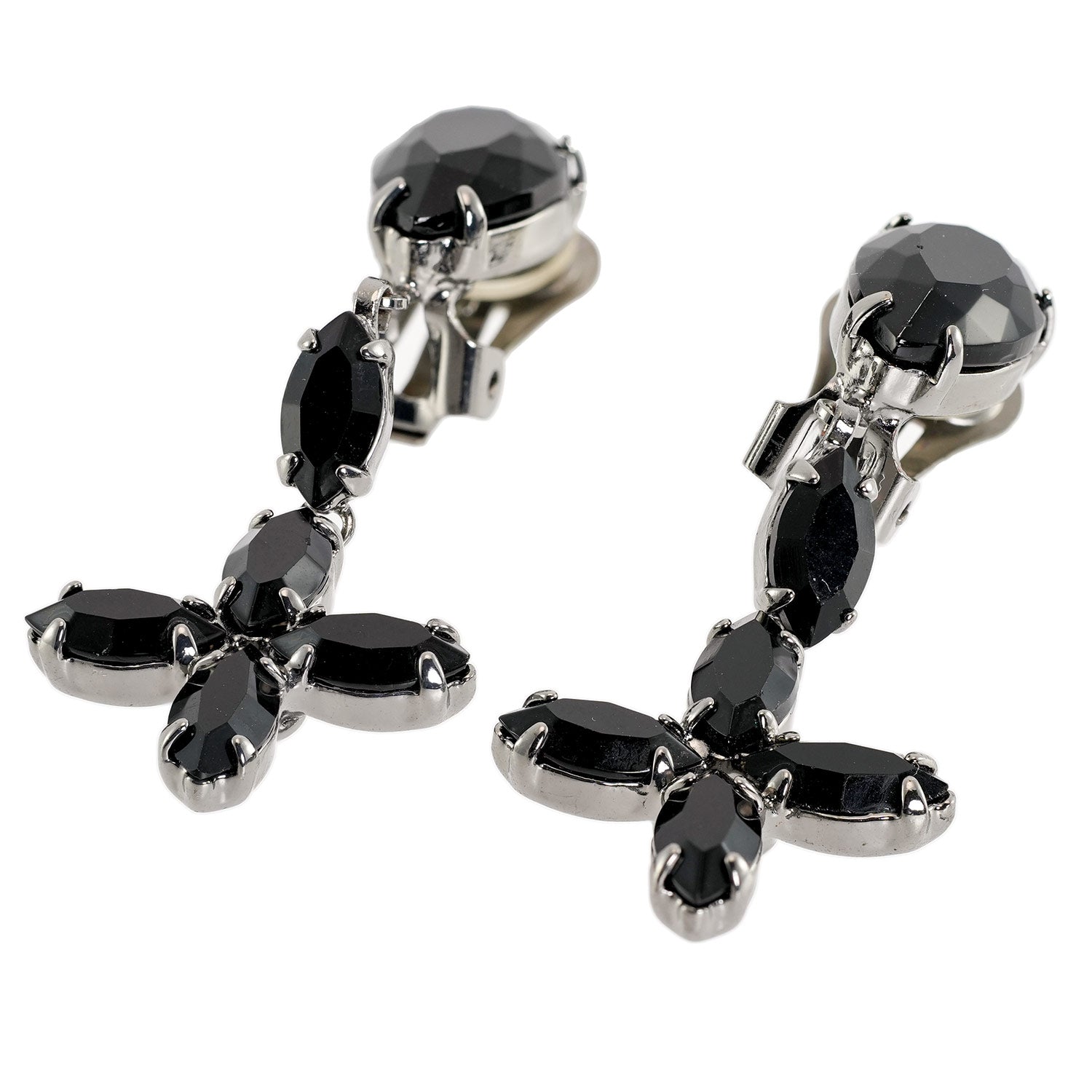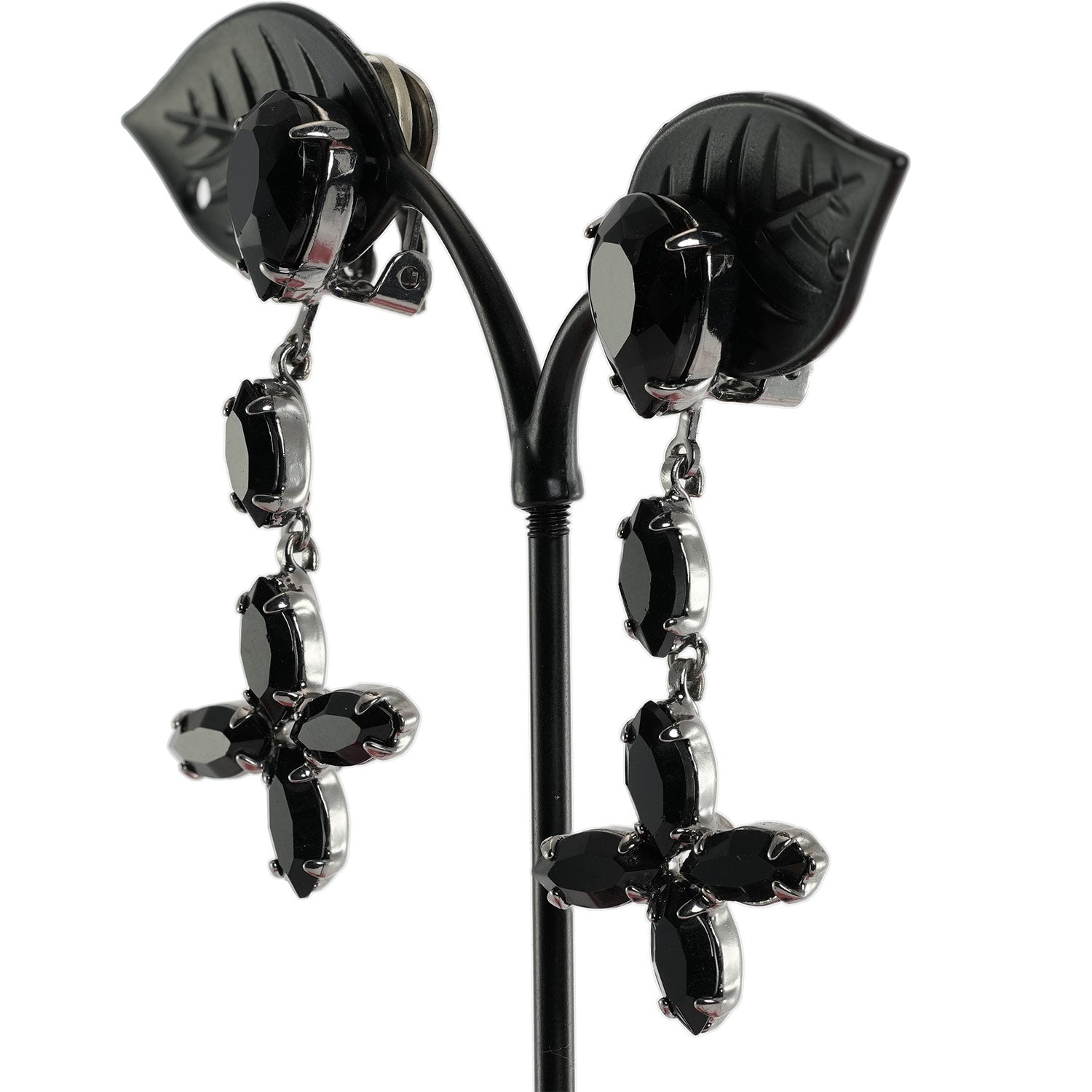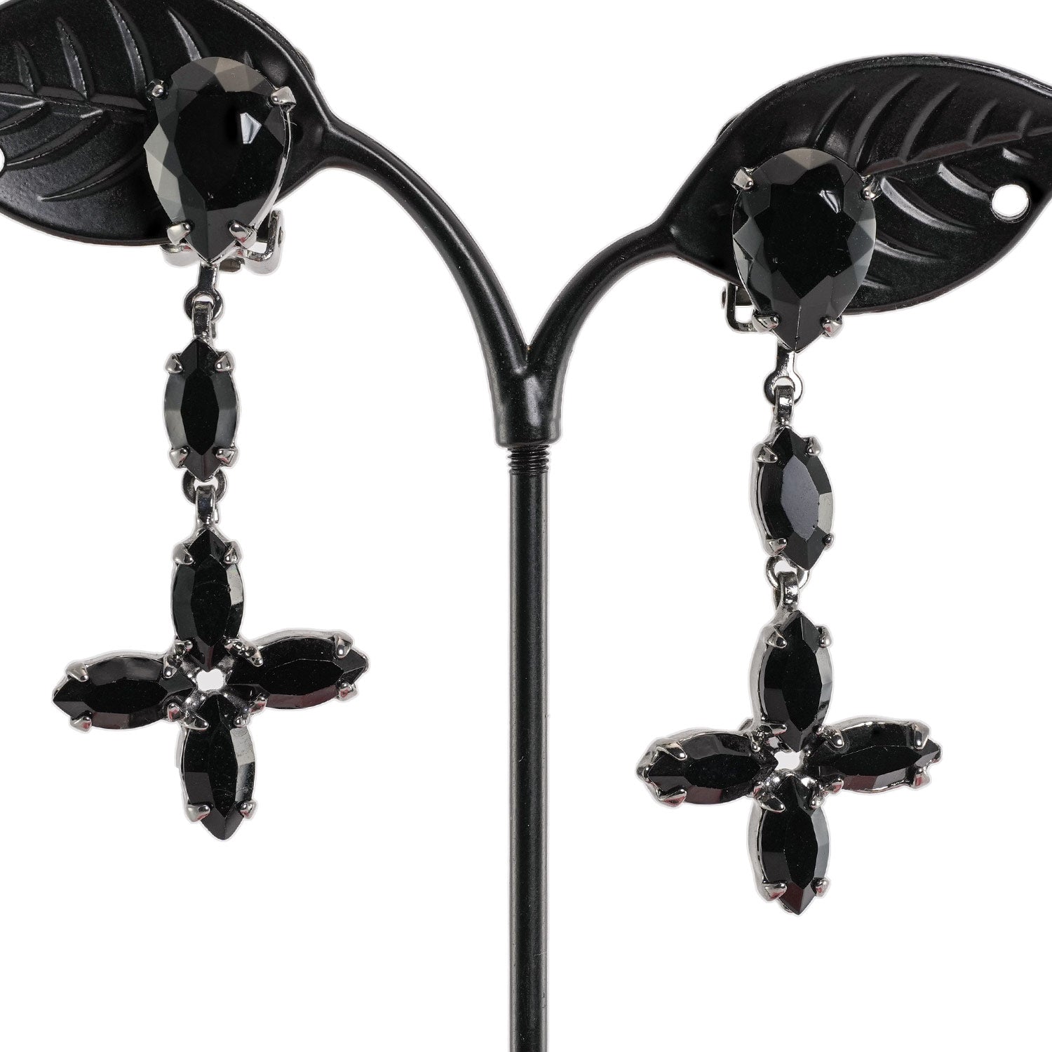 イヤリング ラインストーンブラック ハンギング フラワー er098548