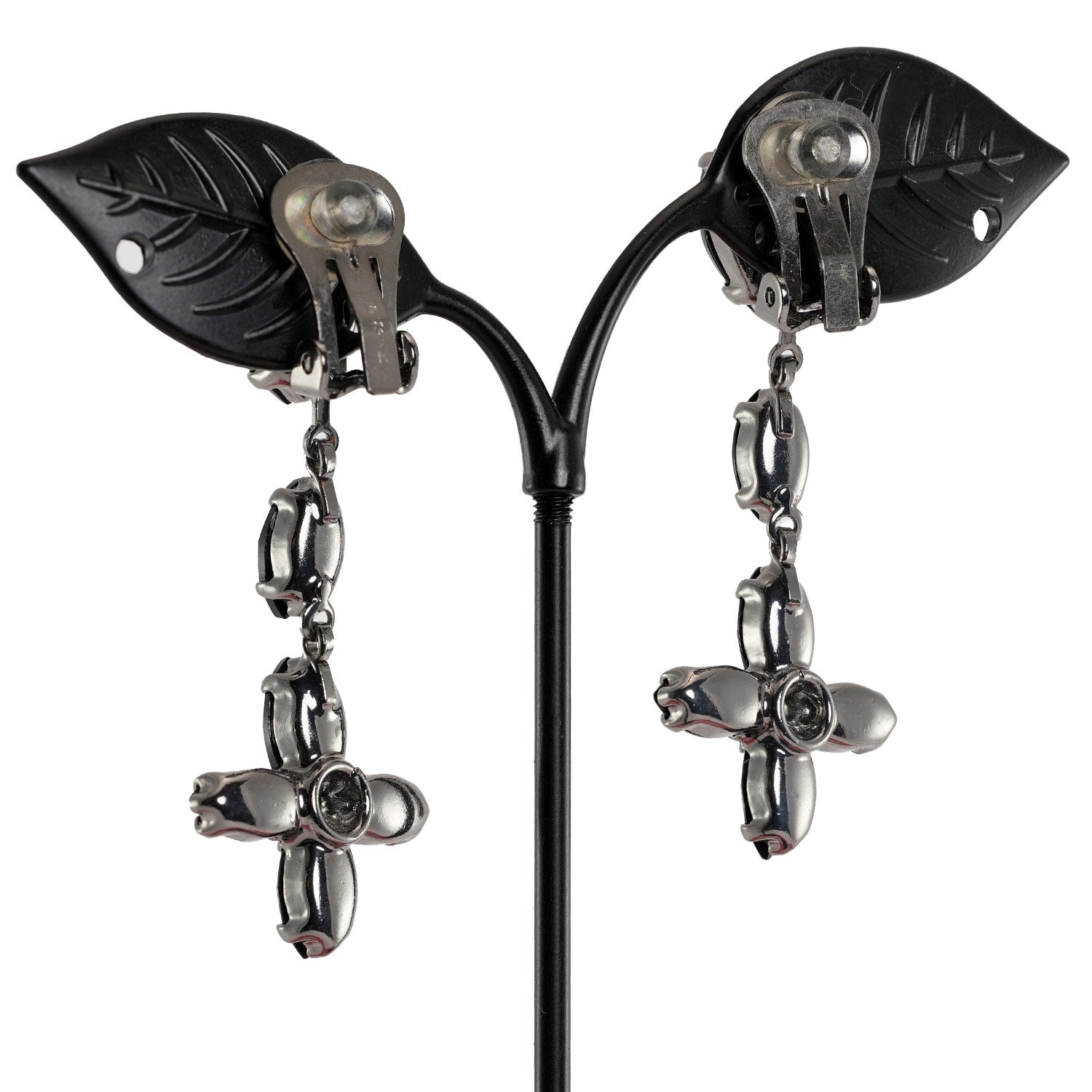 スワロフスキークリスタルをあしらった、モダンな花モチーフのロングイヤリング。