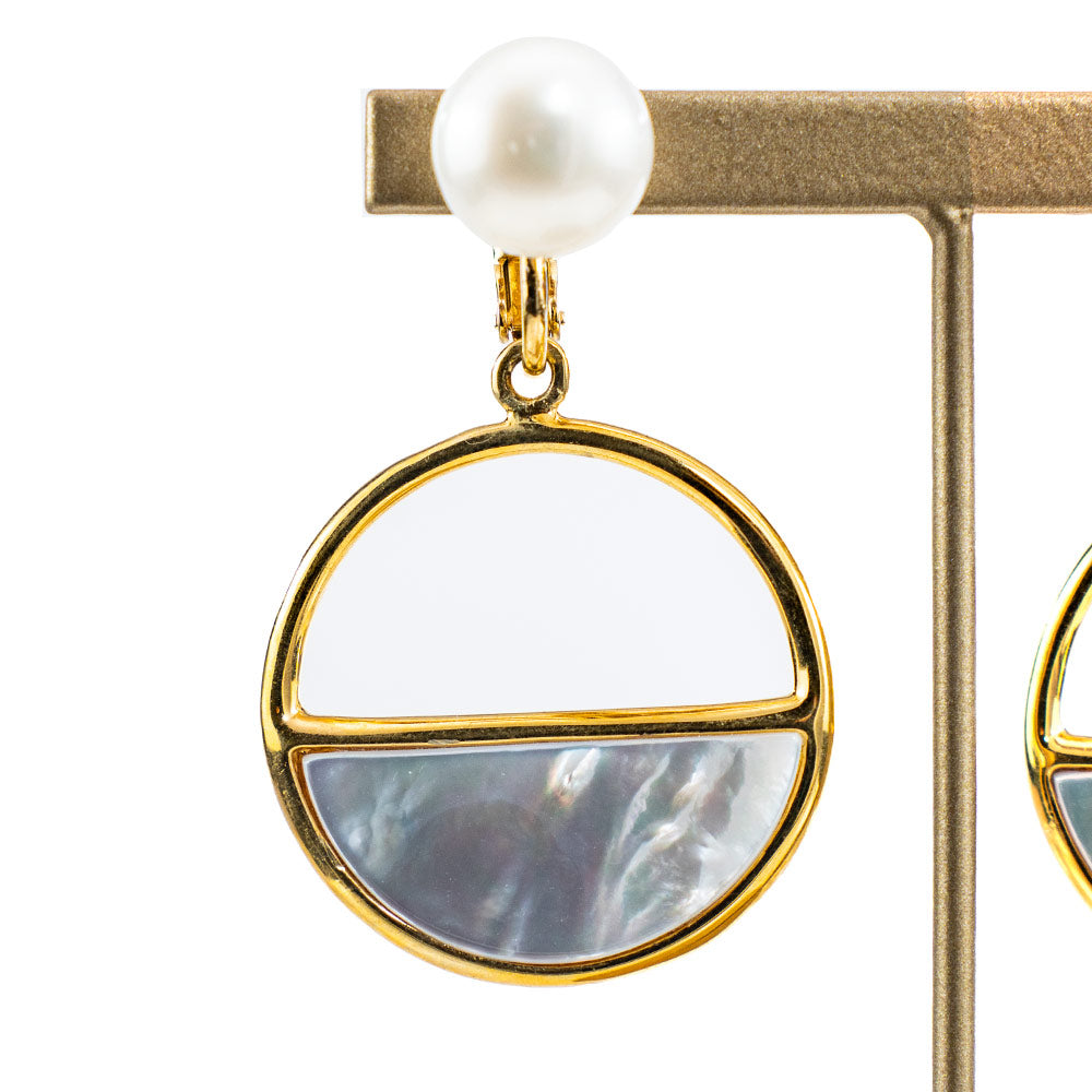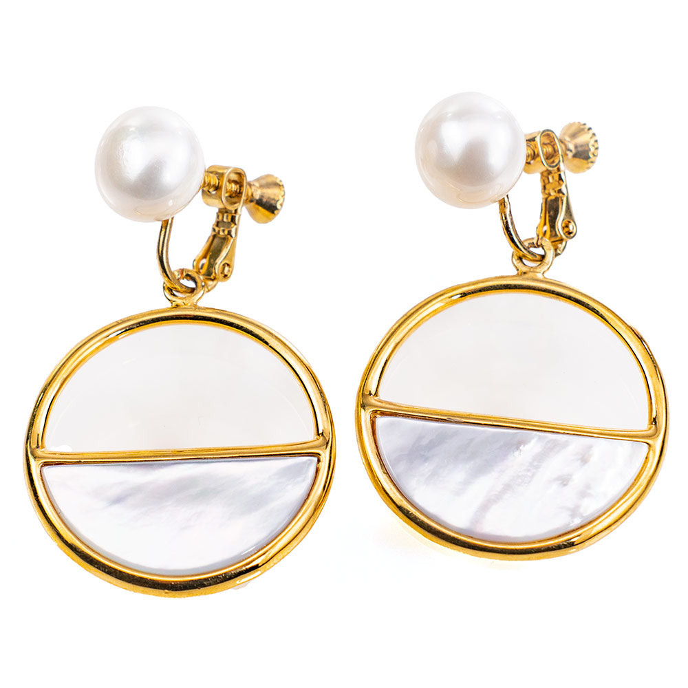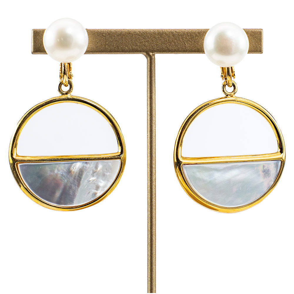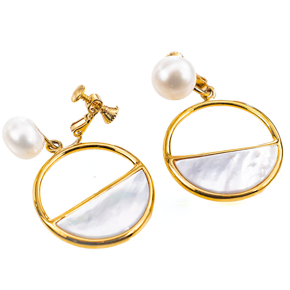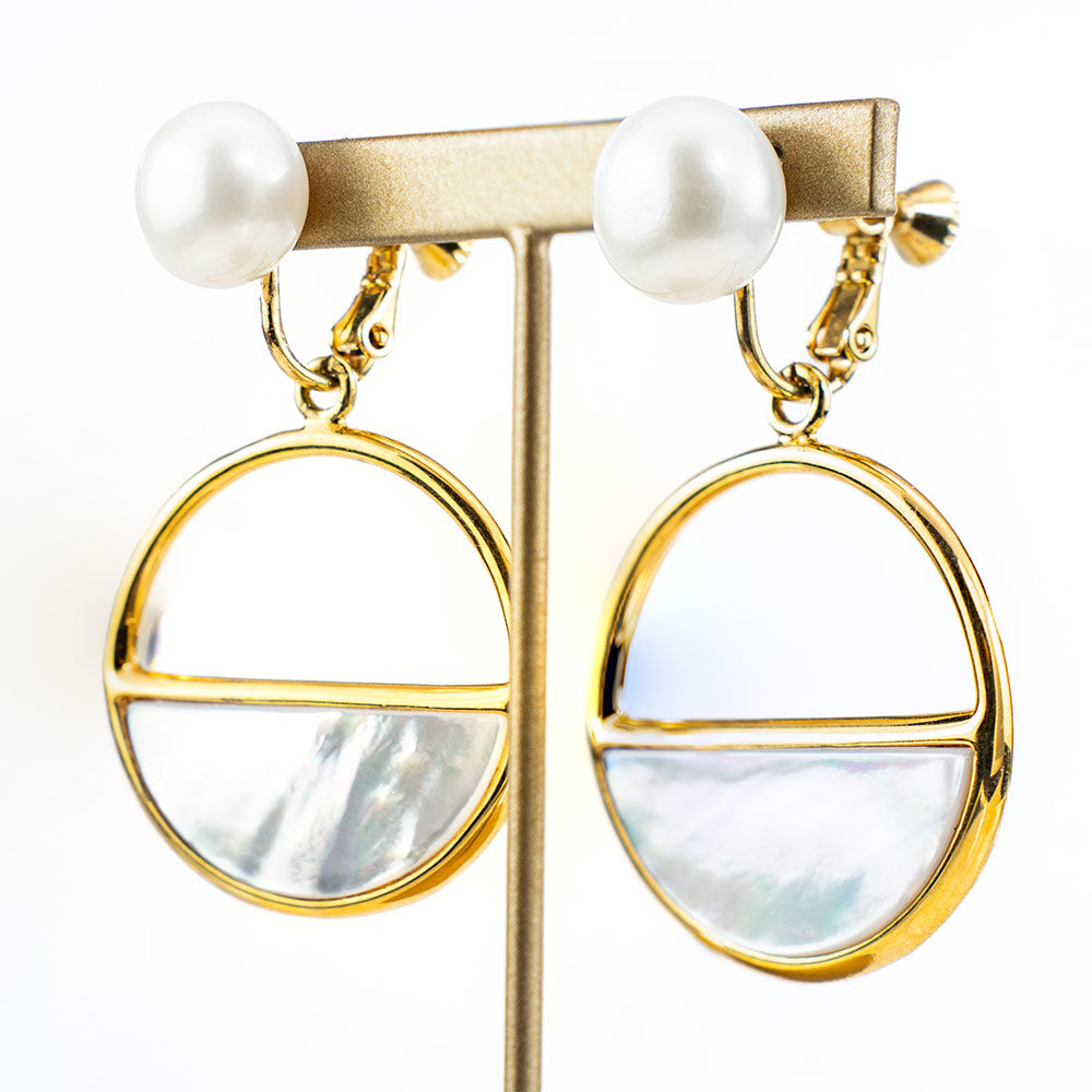 上品な光沢が美しい白蝶貝と淡水パールを組み合わせたイヤリング。