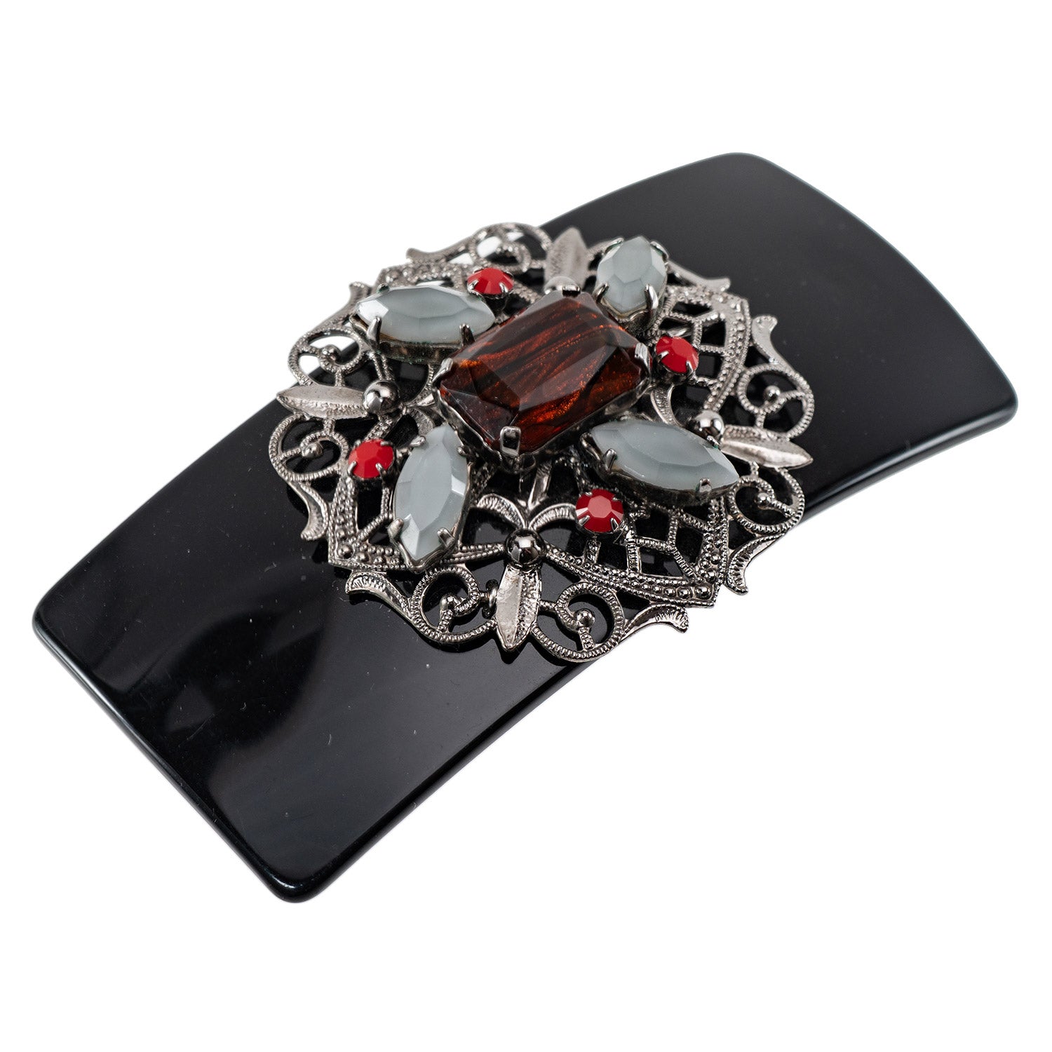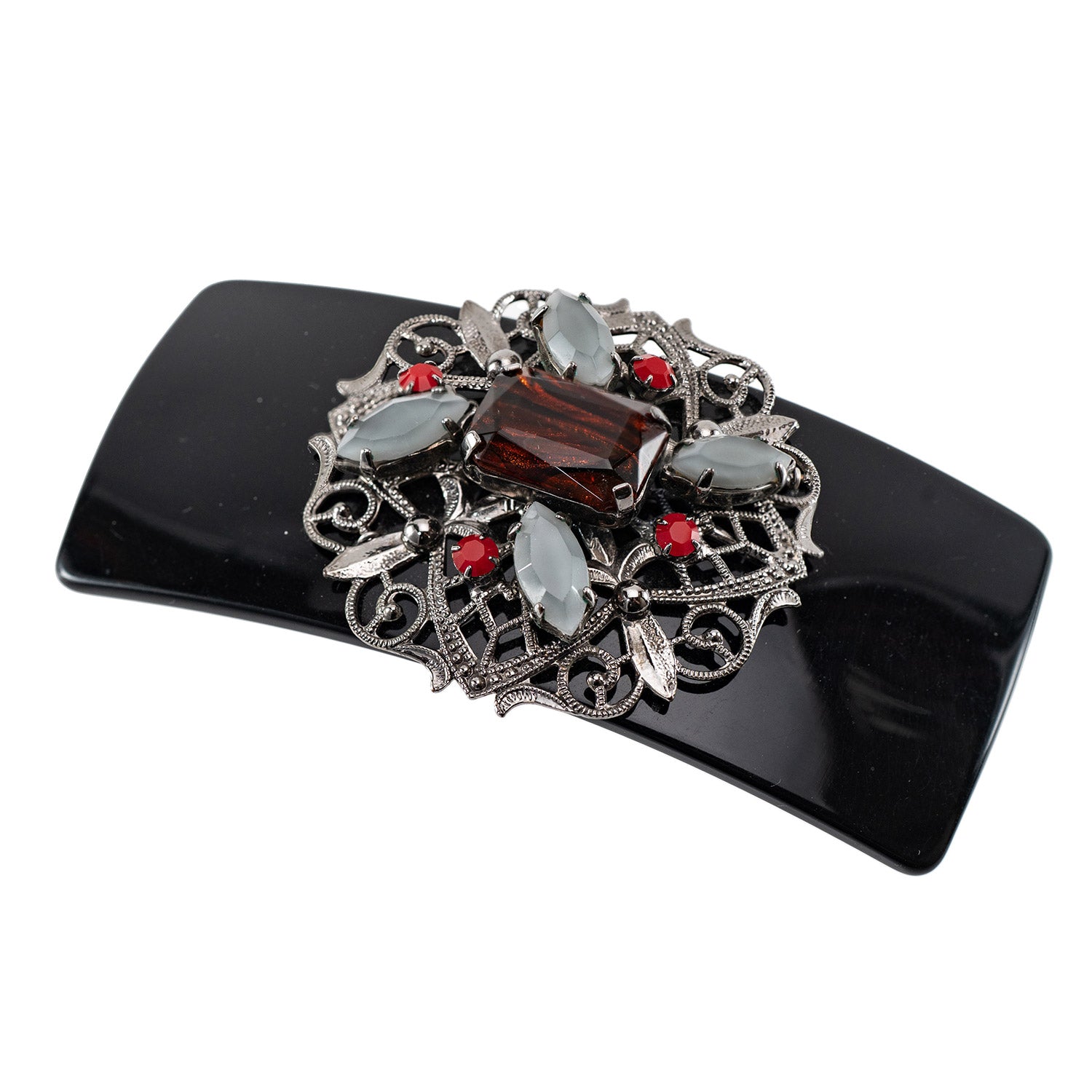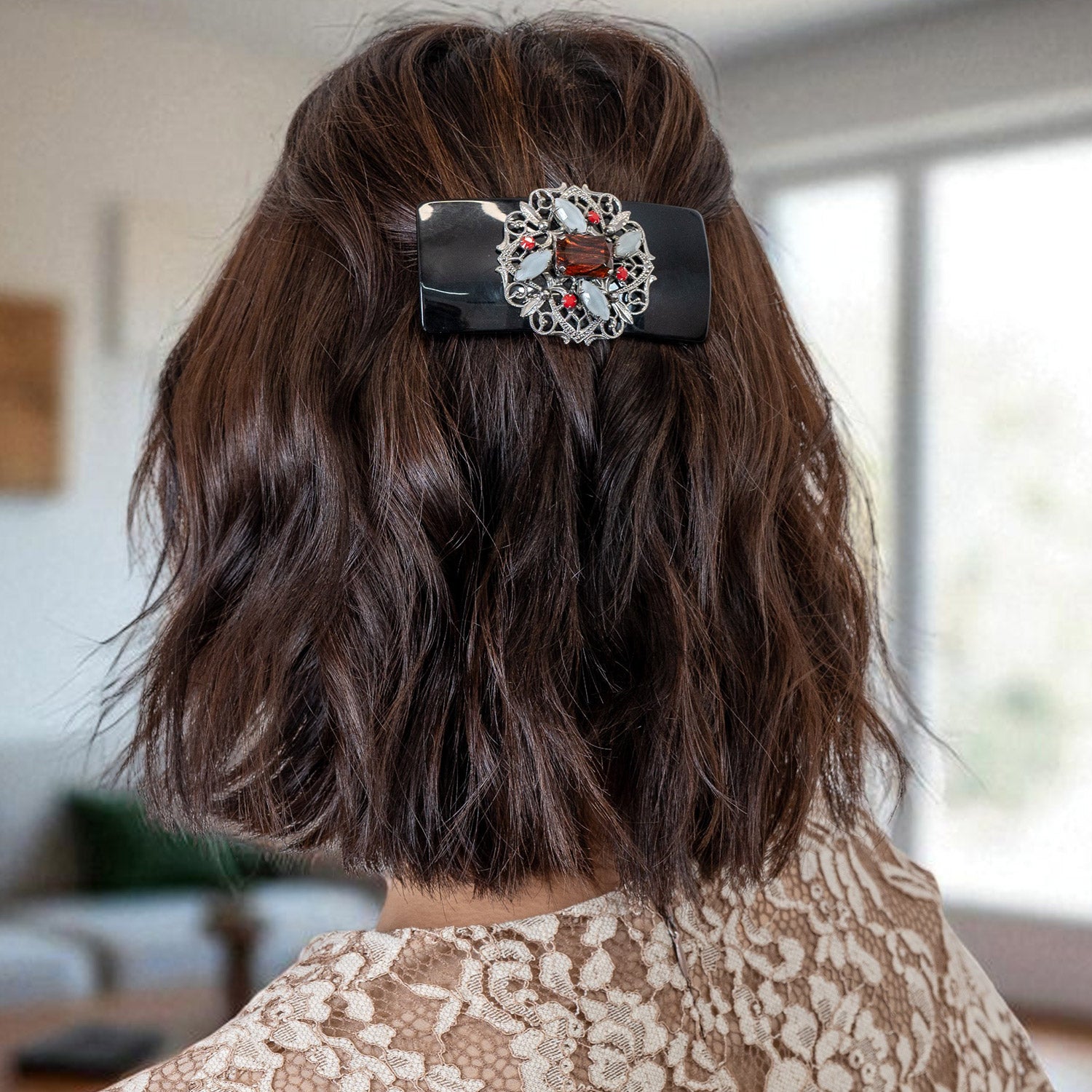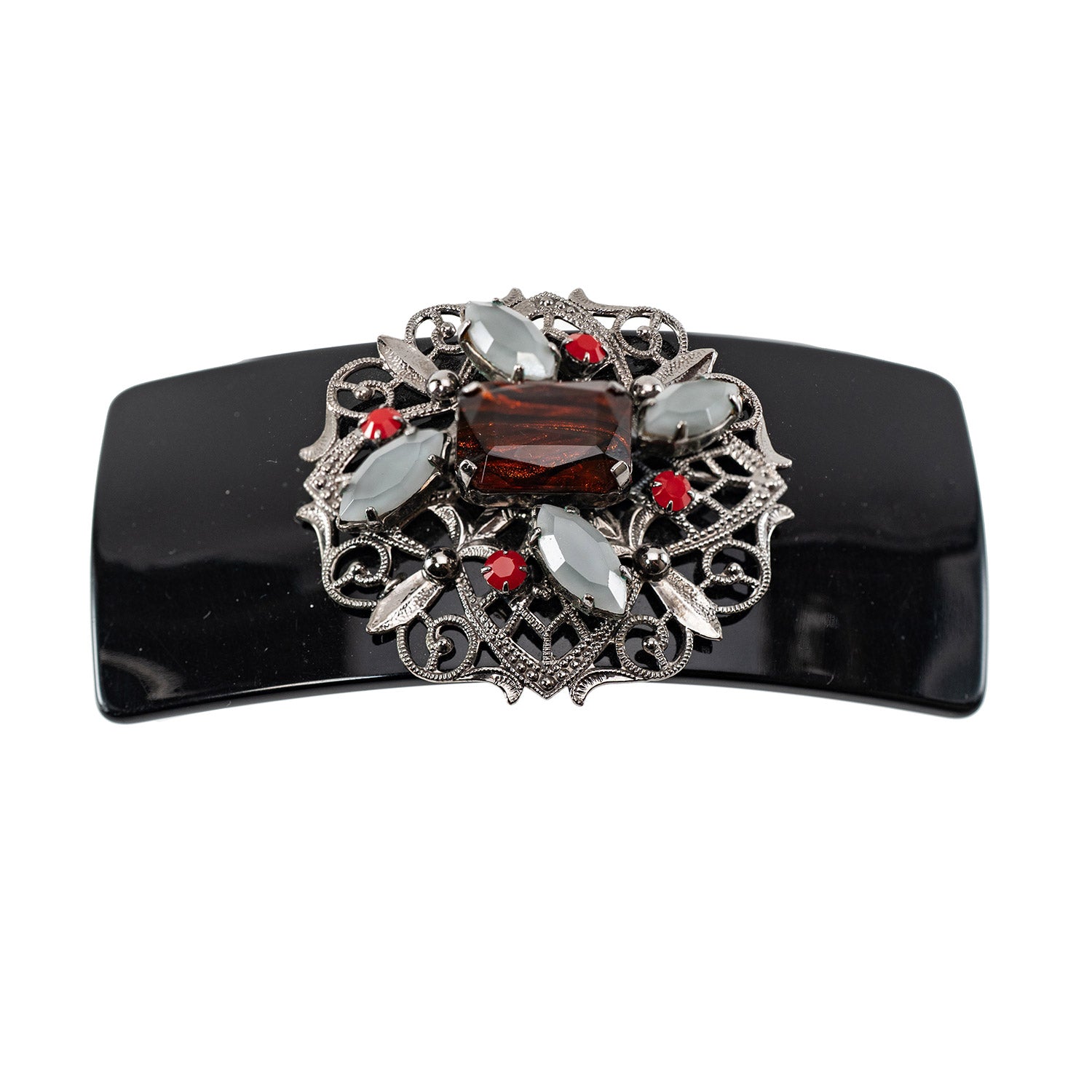上質なボヘミアングラスをあしらい、高級感あふれるバレッタ。