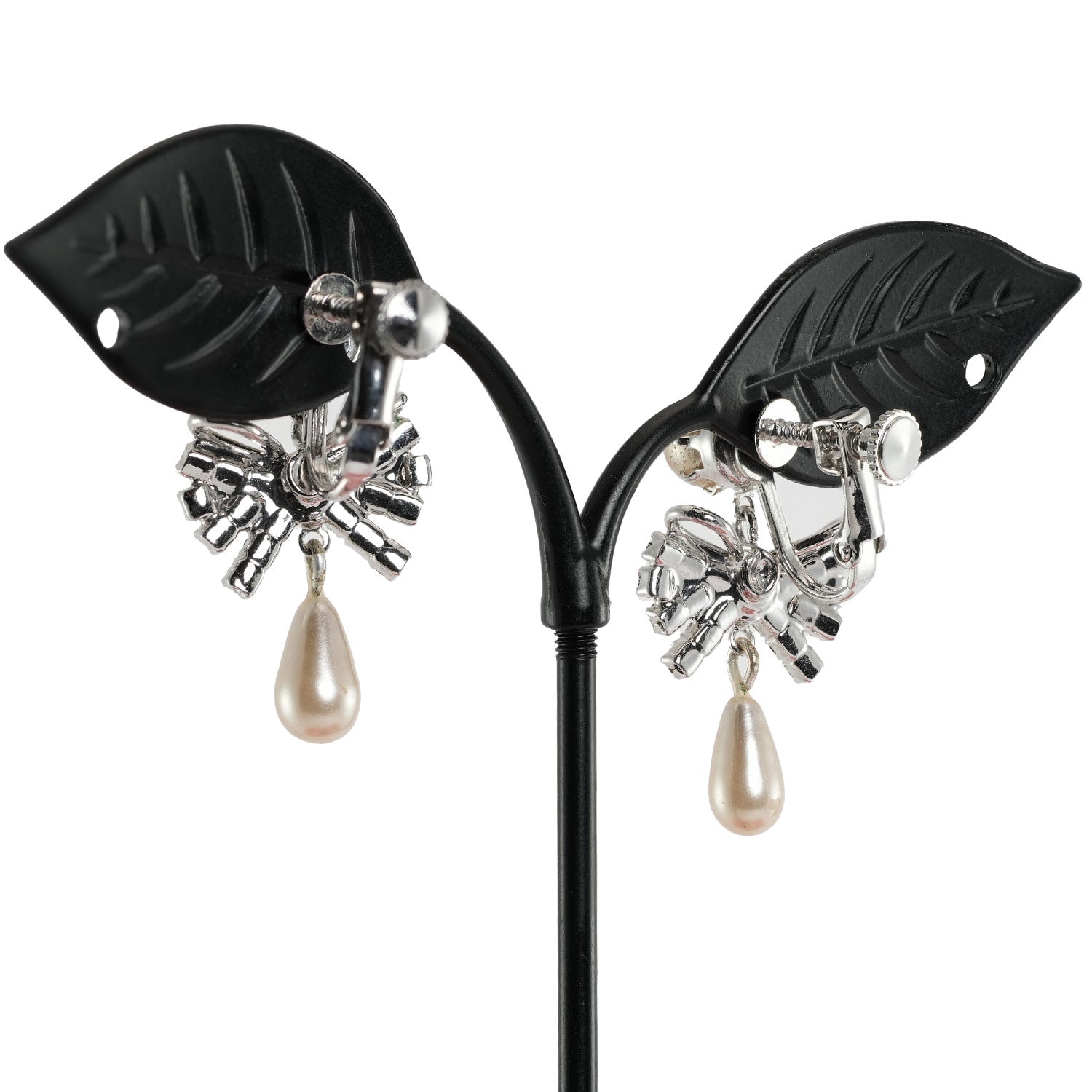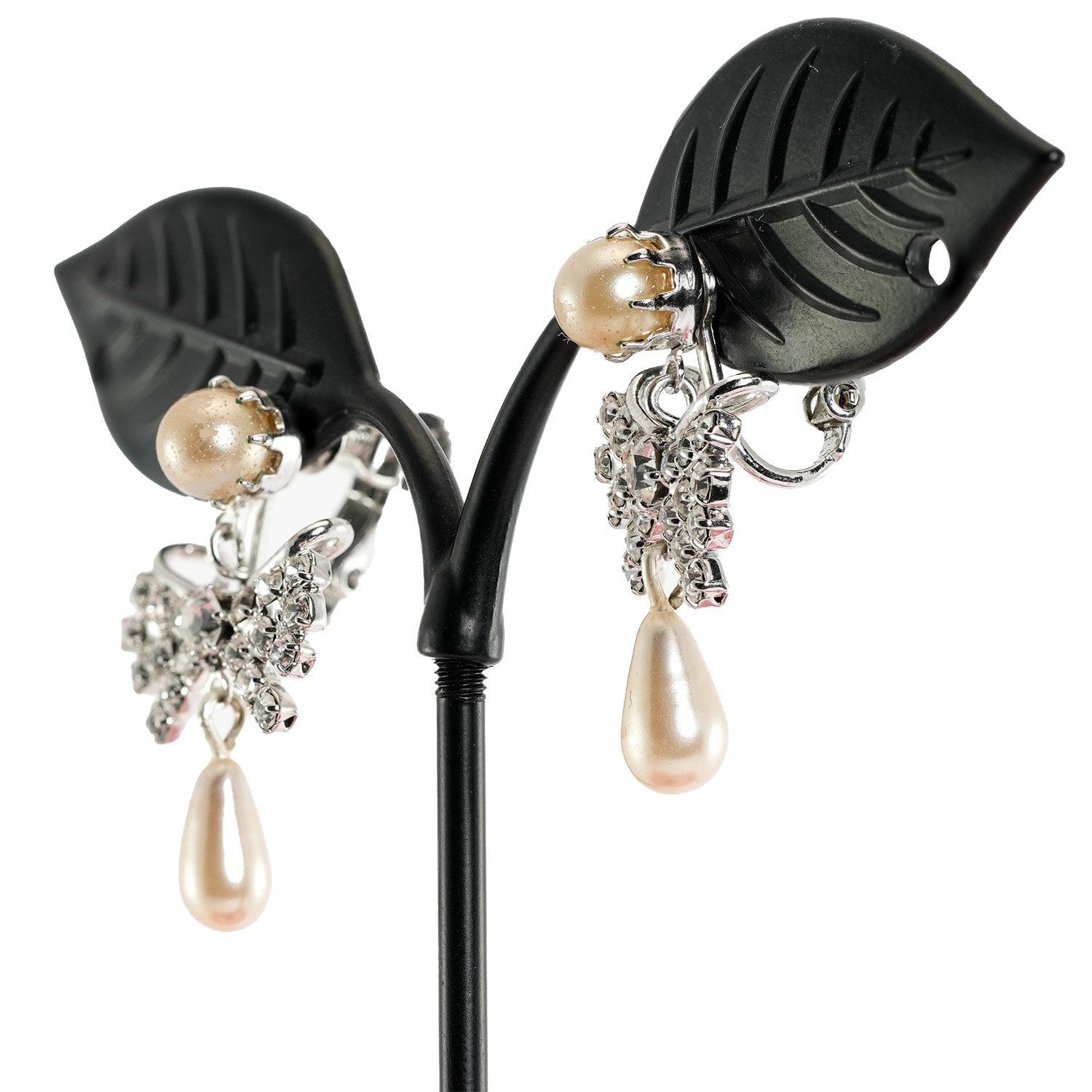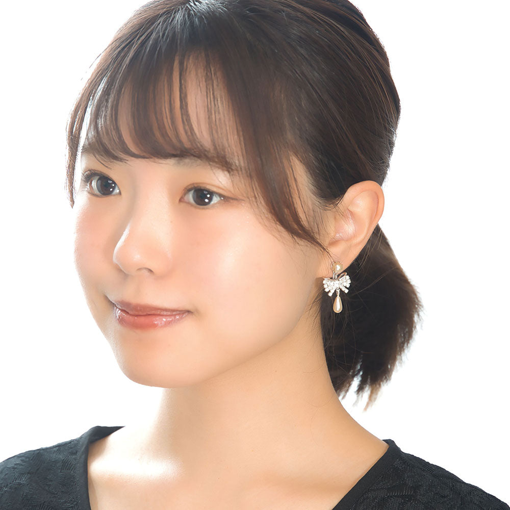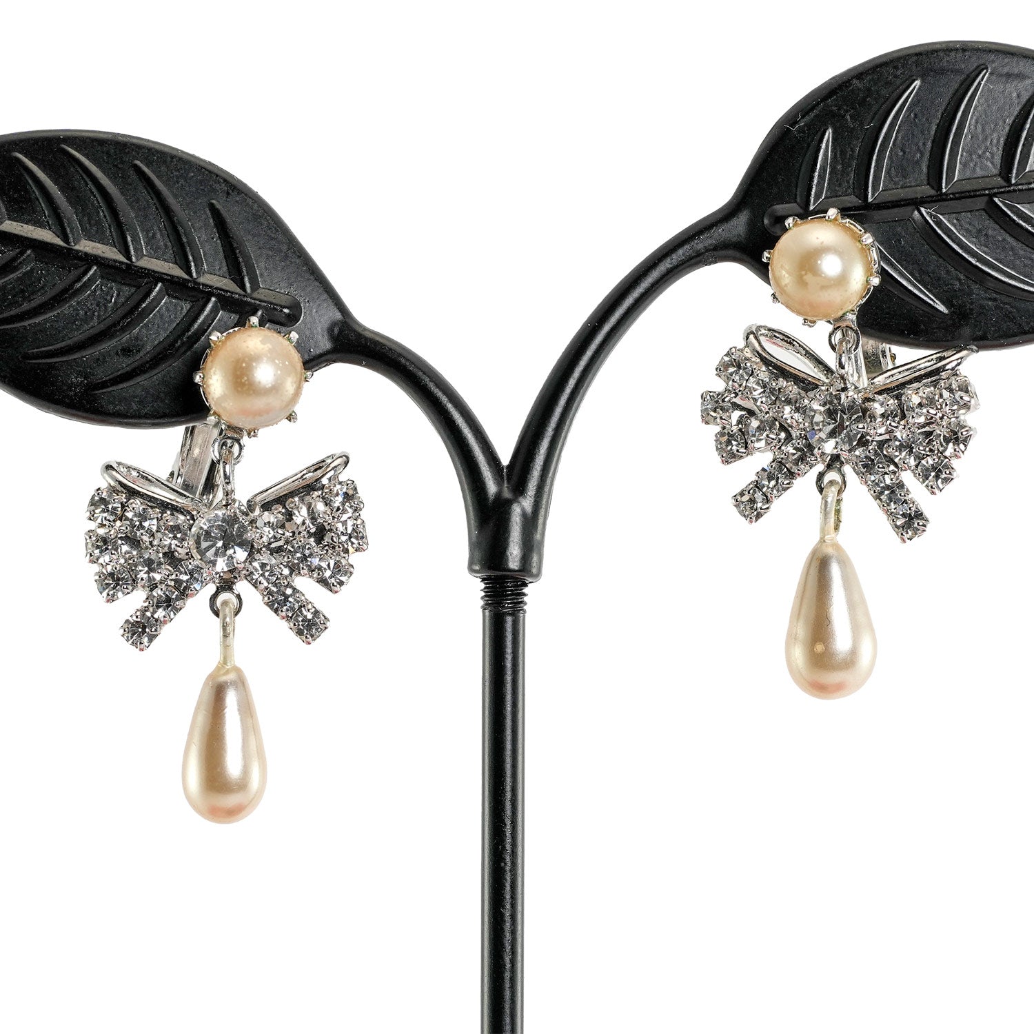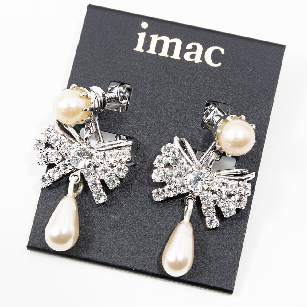 イヤリング ラインストーン パール クリアカラー ホワイト リボン 136164