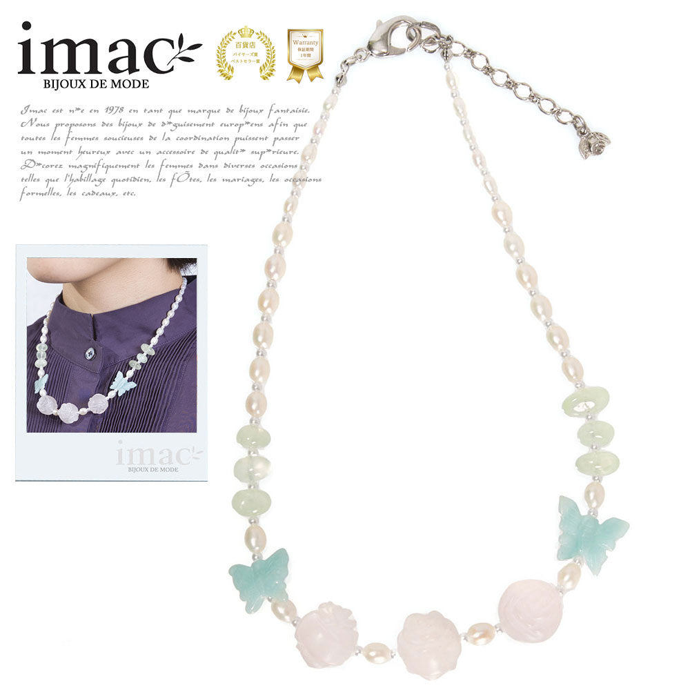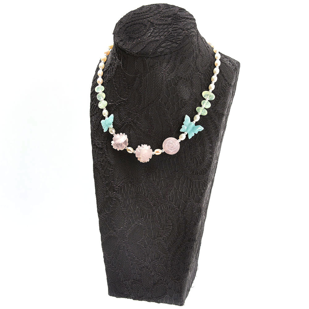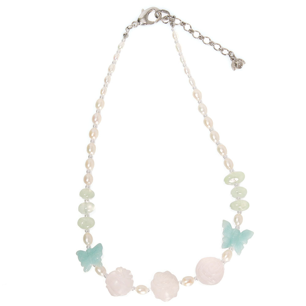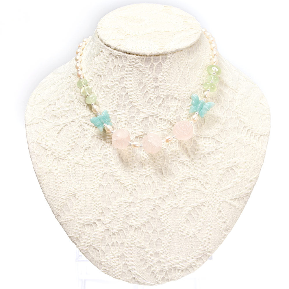 薔薇や蝶モチーフの天然石を組み合わせたネックレス