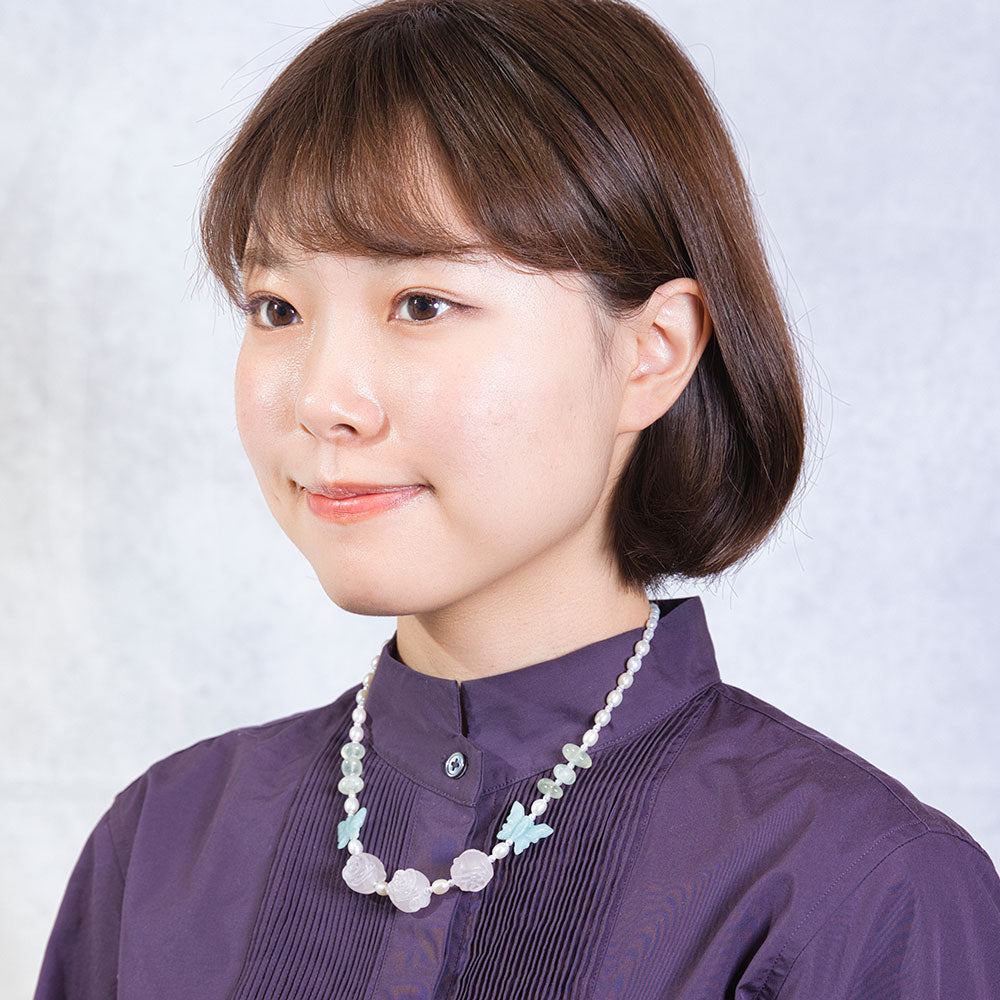 パステルカラーの天然石を組み合わせ、エレガントさを演出します