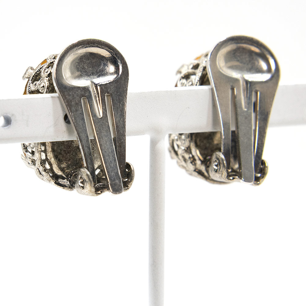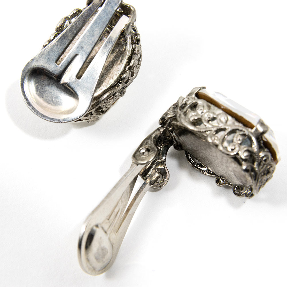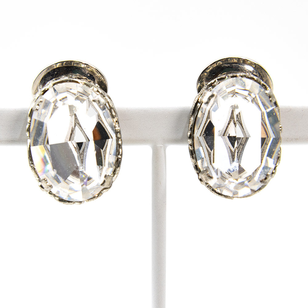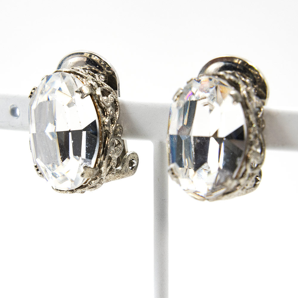 大粒のクリアカラーのラインストーンがきらめくイヤリング