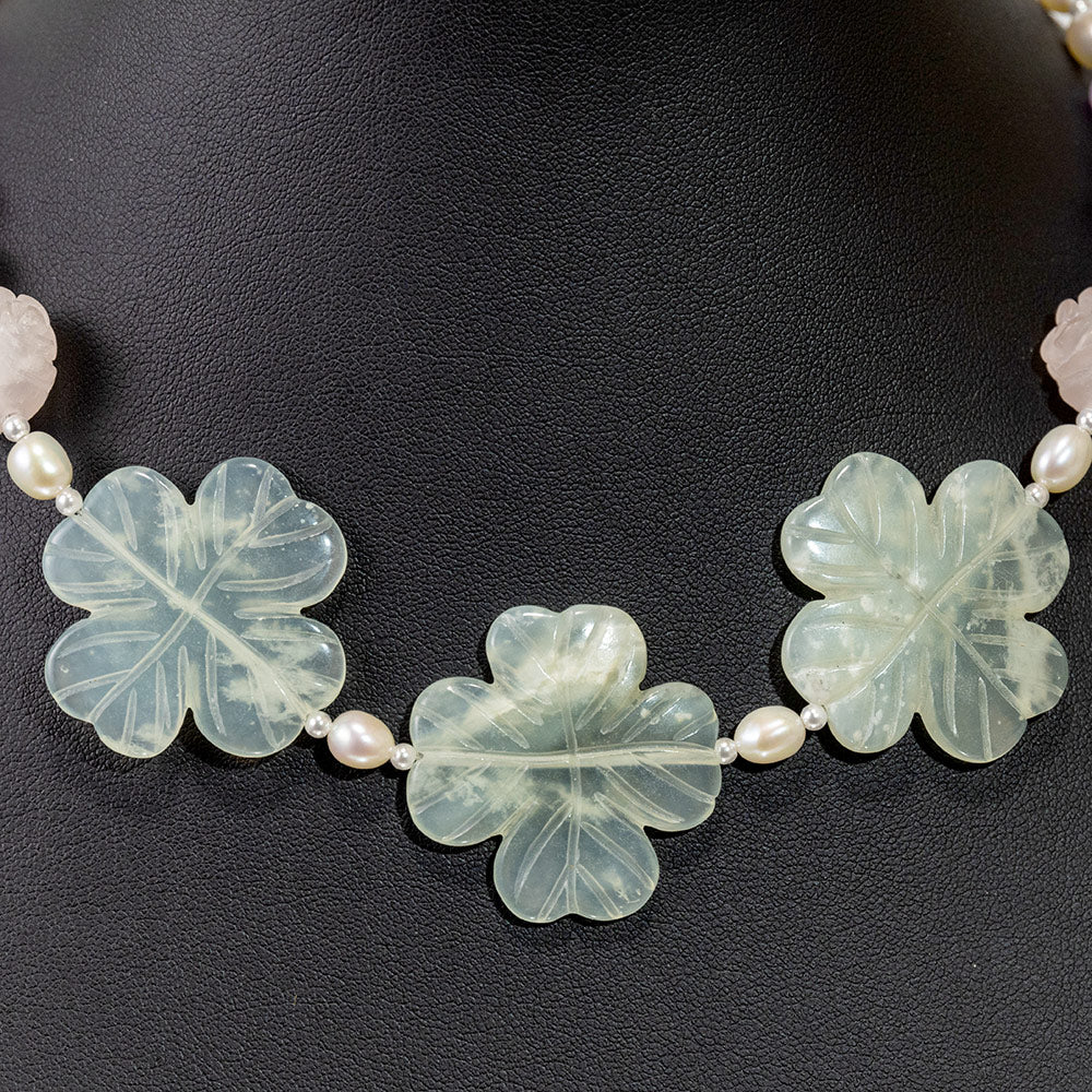 クローバーや薔薇モチーフの天然石を組み合わせたネックレス