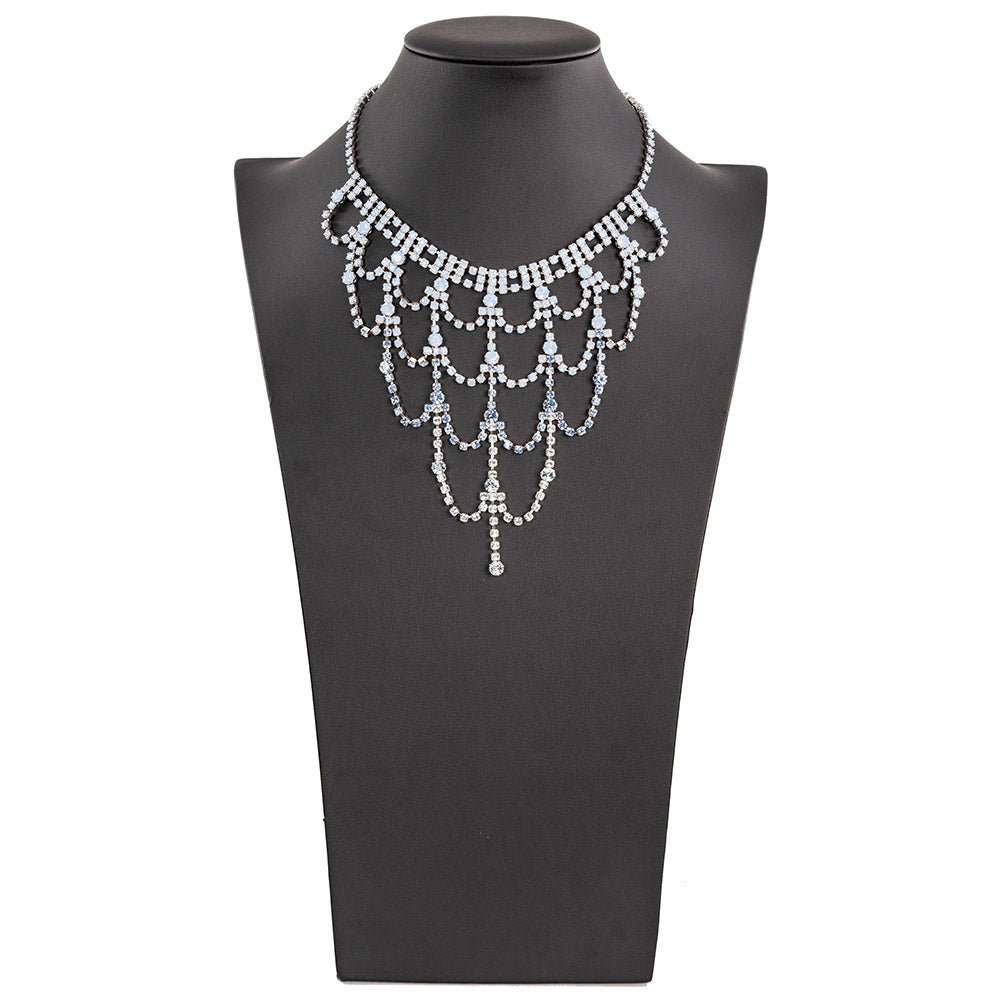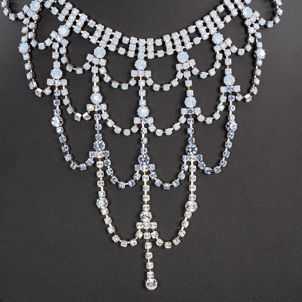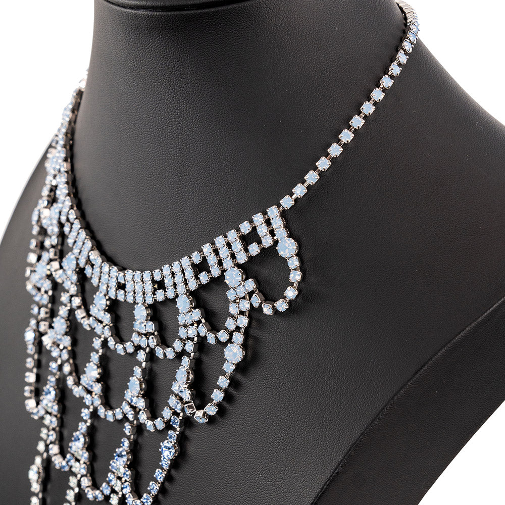 ビジュー チェコ 青 水色 大ぶり 大きい きらきら ビジュー パーティー 舞台 衣装 発表会 ドレス ネックレス 首飾り おすすめ 人気 おしゃれ 母の日プレゼント エレガント 高級感 アクセサリー 女子会 お呼ばれ 会食 同窓会 食事会 誕生日 ホワイトデー クリスマス ギフト ブランド