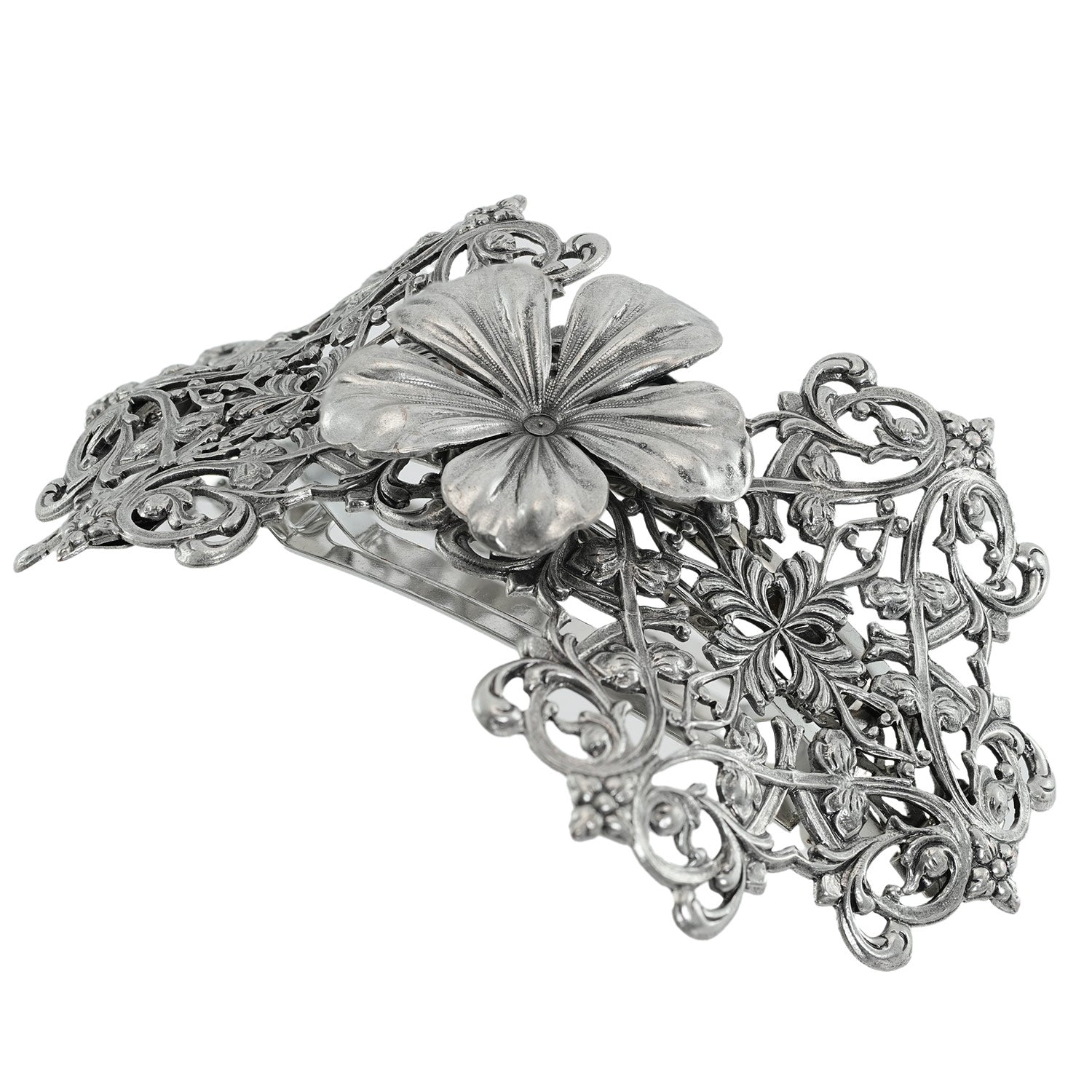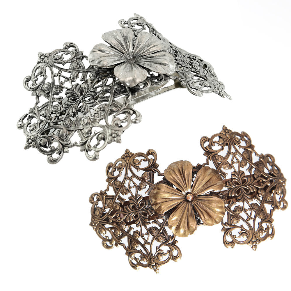 • 画像をギャラリービューアに読み込む, バレッタ レースメタル シルバー ブロンズ フラワー 142919 142920